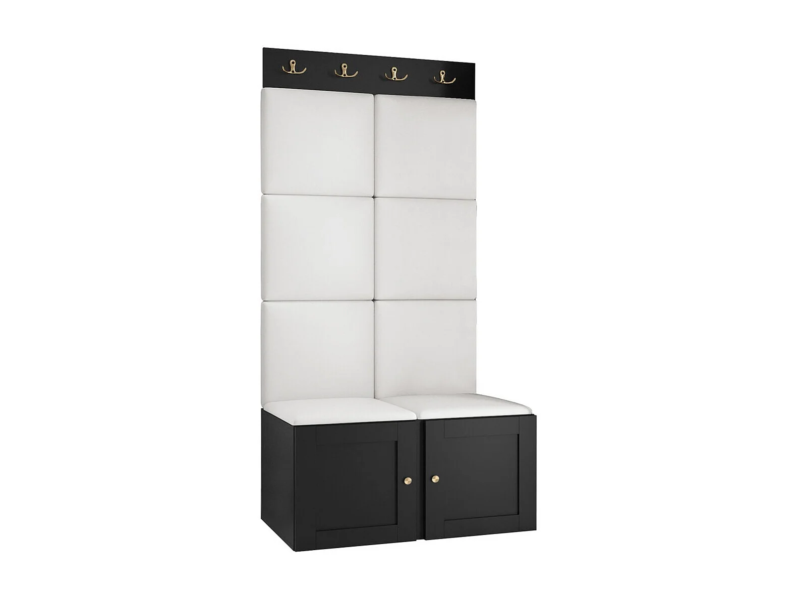 Meuble d'entrée Hartford 375, 186x84x46cm, Noir|Blanc, Stratifié|Faux cuir|MDF