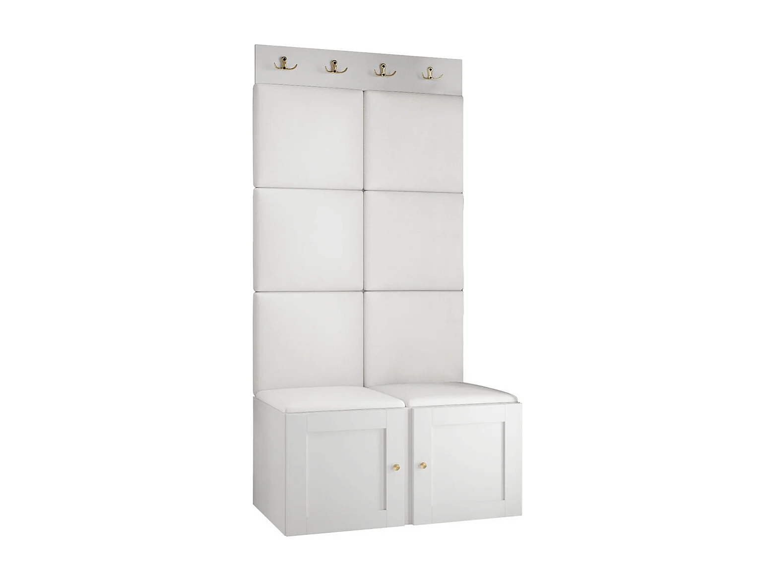 Meuble d'entrée Hartford 375, 186x84x46cm, Blanc, Stratifié|Faux cuir|MDF, À poser|Murale