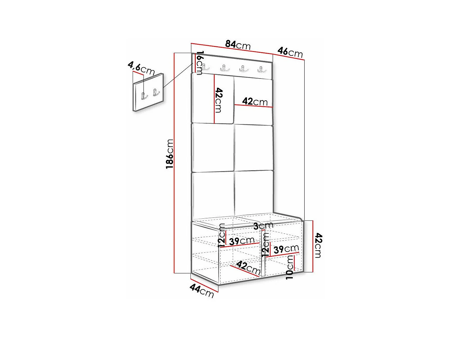 Meuble d'entrée Hartford 375, 186x84x46cm, Turquoise|Blanc, MDF|Stratifié|Tissu