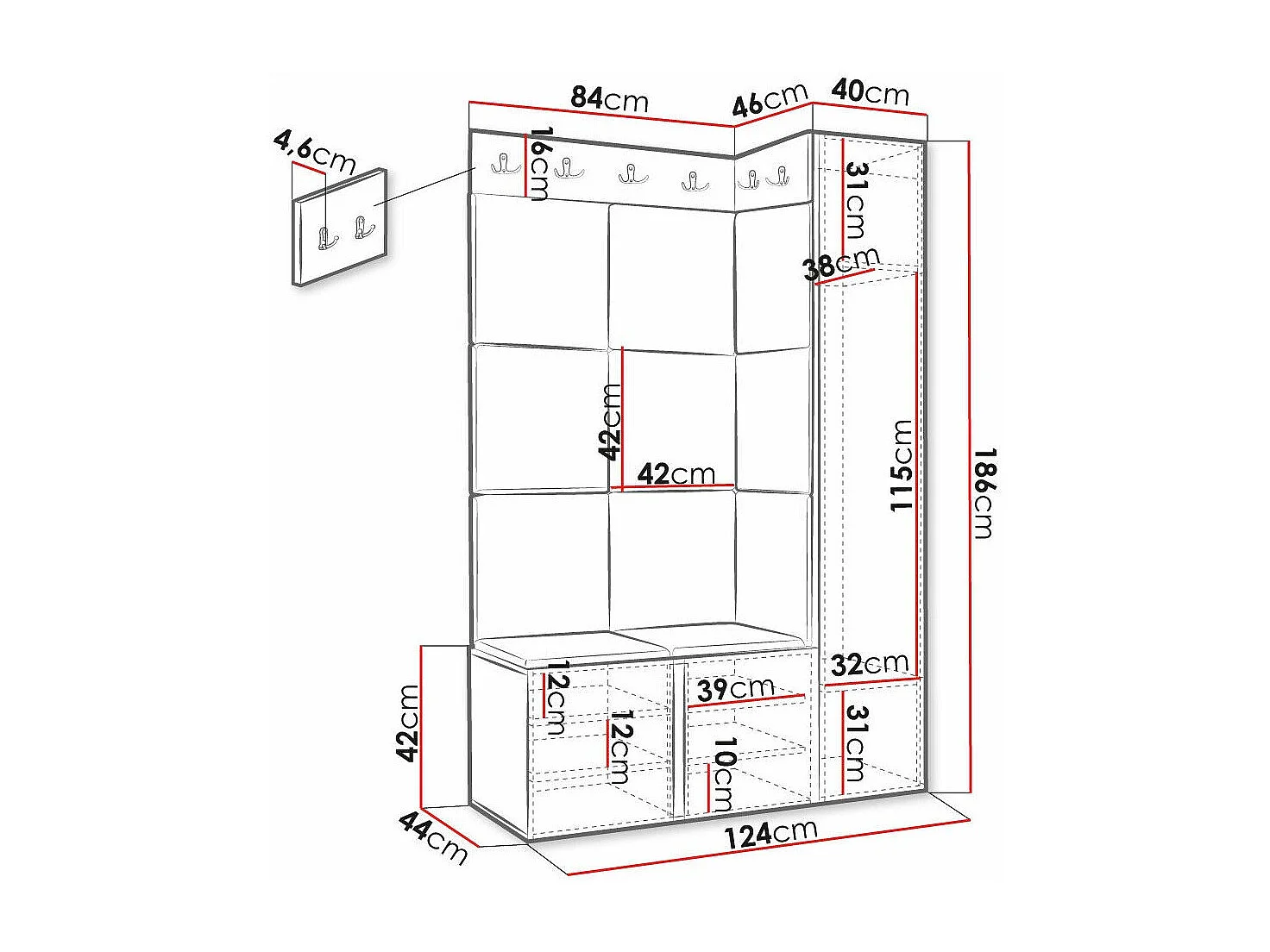 Meuble d'entrée Hartford 377, 186x124x46cm, Jaune|Blanc, MDF|Stratifié|Tissu