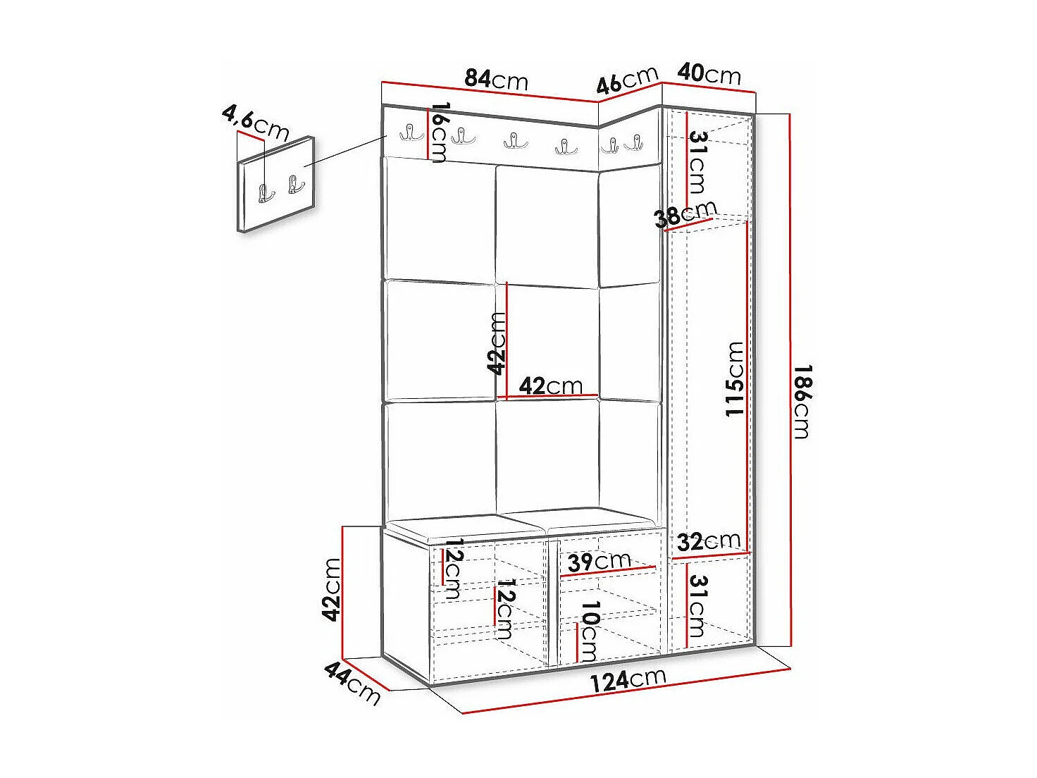 Meuble d'entrée Hartford 377, 186x124x46cm, Noir, Stratifié|Faux cuir|MDF, Murale|À poser
