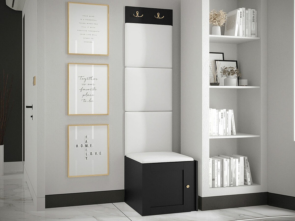 Meuble d'entrée Hartford 378, 186x42x46cm, Noir|Blanc, Stratifié|Faux cuir|MDF