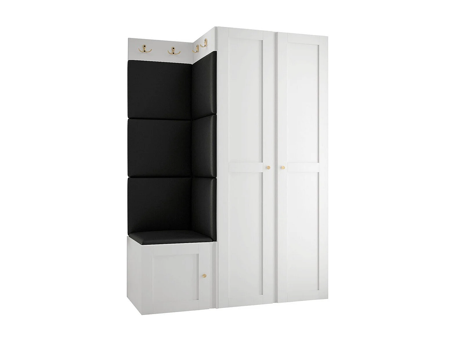Meuble d'entrée Hartford 379, 186x116x46cm, Noir|Blanc, Stratifié|Faux cuir|MDF