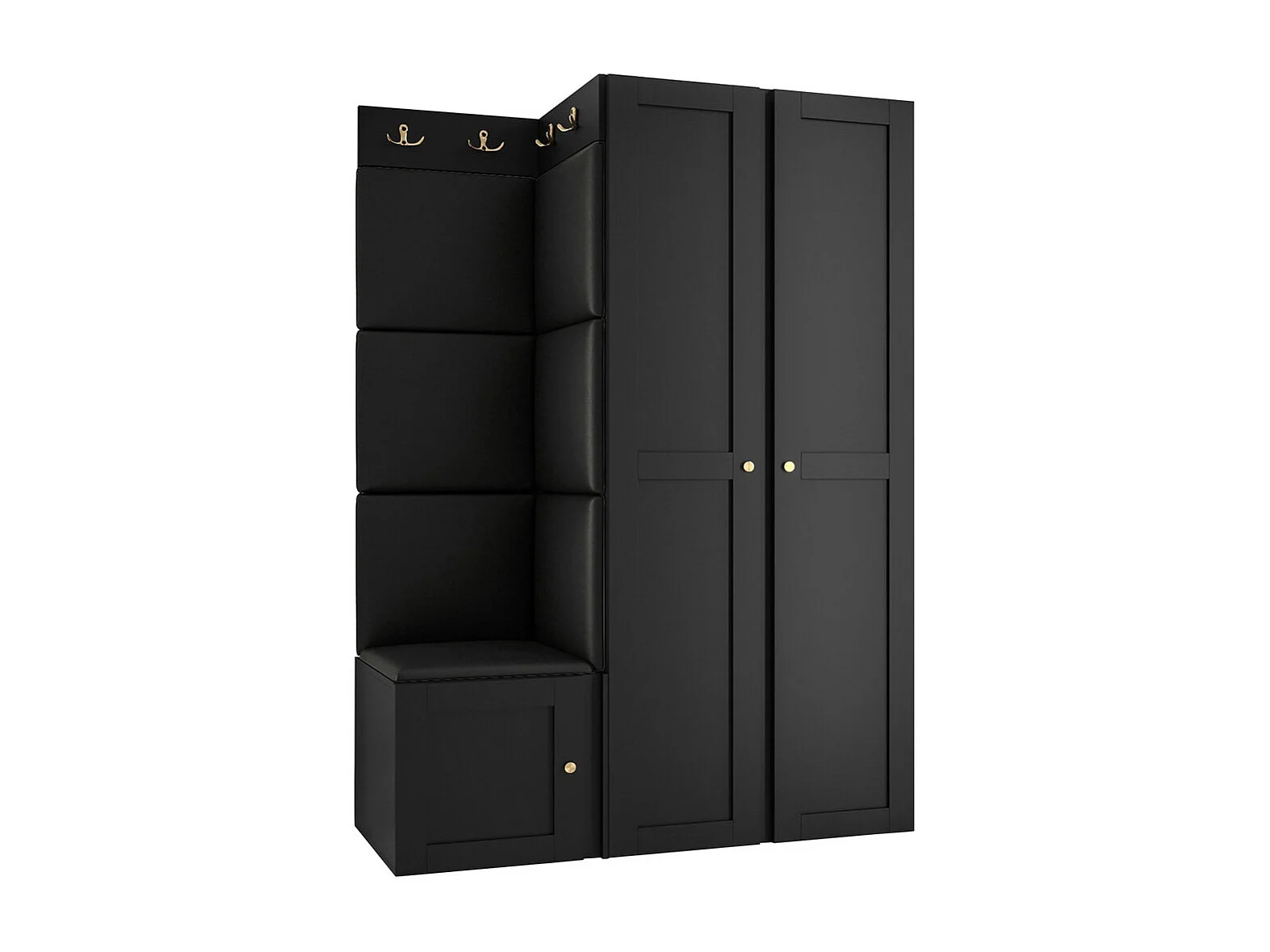 Meuble d'entrée Hartford 379, 186x116x46cm, Noir, Stratifié|Faux cuir|MDF, Murale|À poser