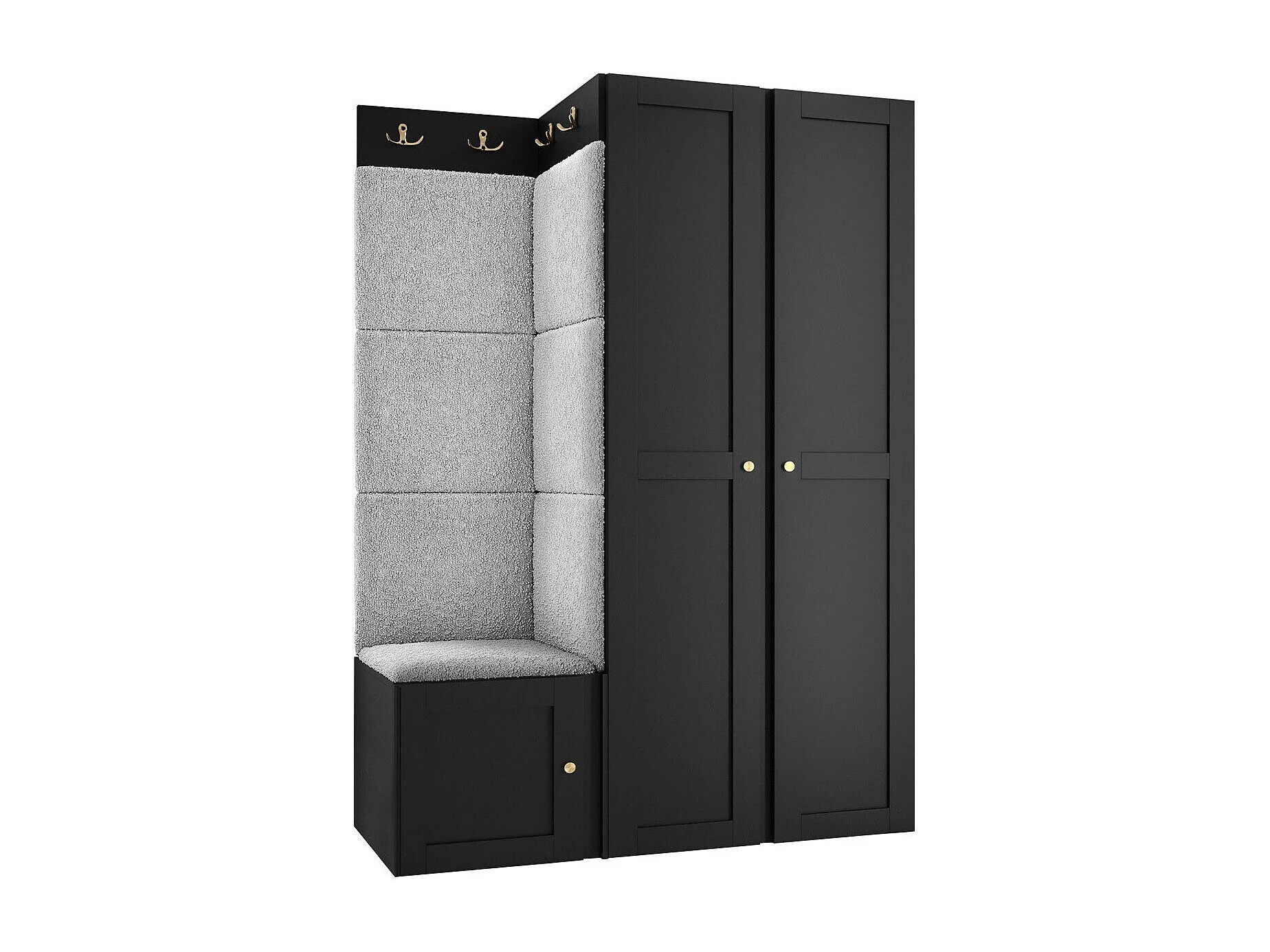 Meuble d'entrée Hartford 379, 186x116x46cm, Noir|Gris clair, Stratifié|Tissu|MDF
