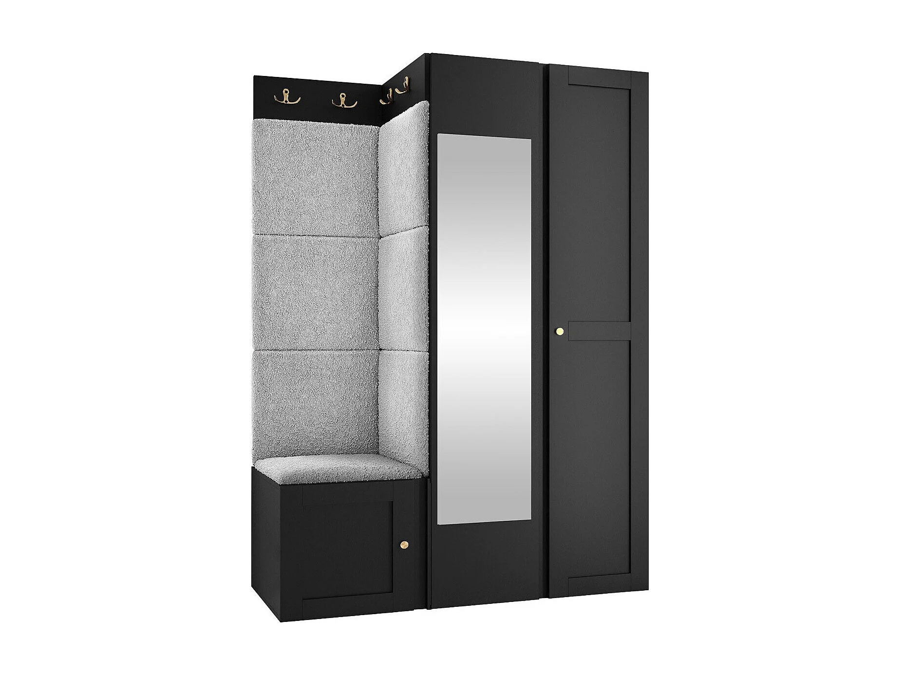 Meuble d'entrée Hartford 380, 186x116x46cm, Disponible, Noir|Gris clair, À poser|Murale