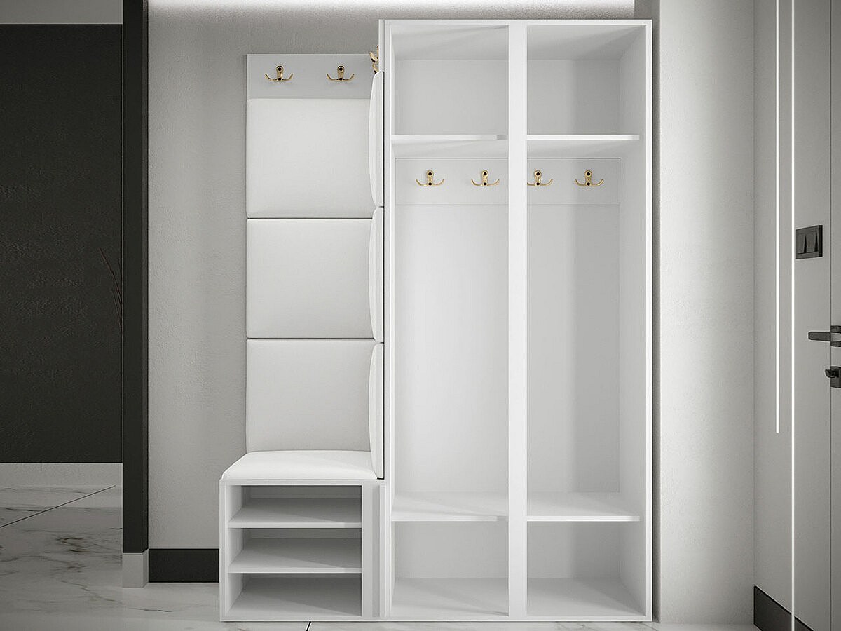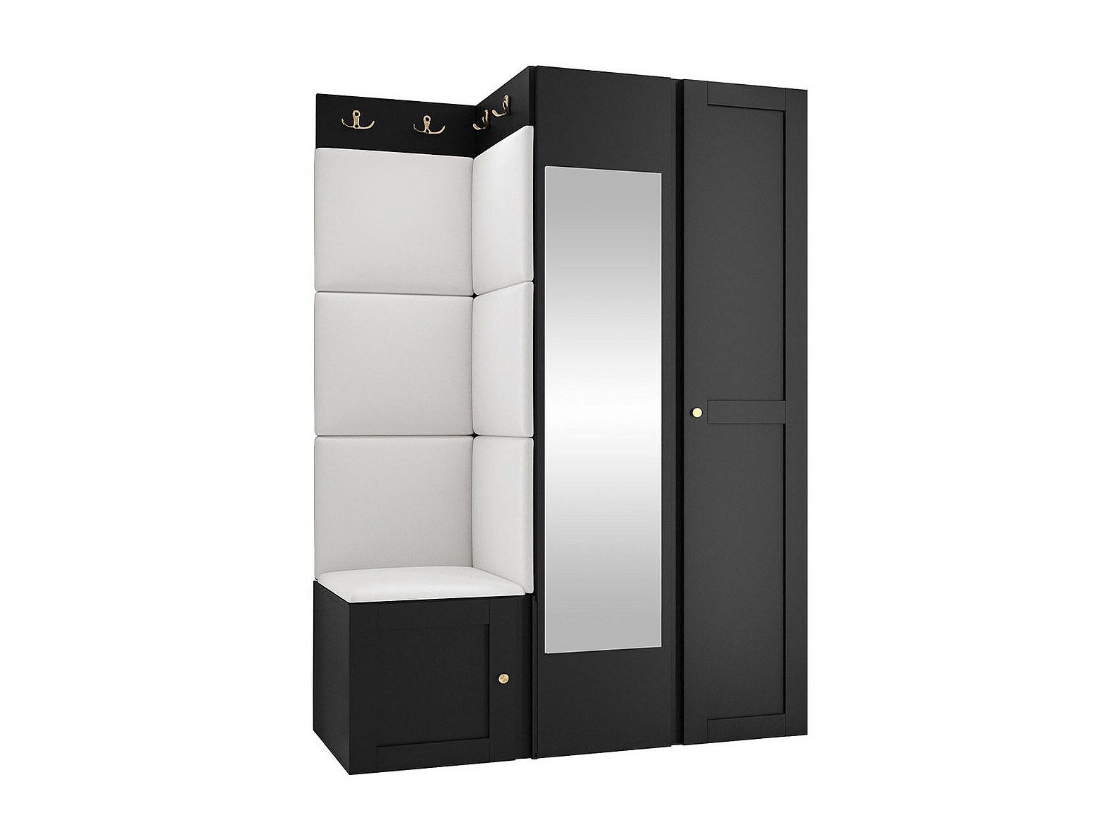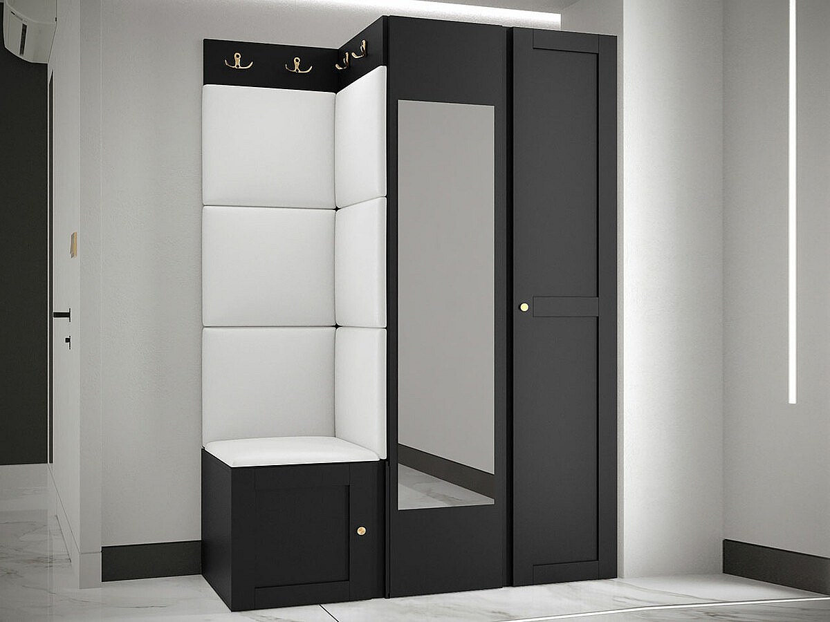 Meuble d'entrée Hartford 380, 186x116x46cm, Miroir, Blanc|Noir, MDF|Stratifié|Faux cuir
