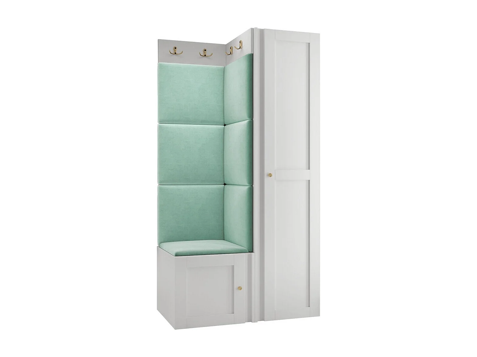 Meuble d'entrée Hartford 381, 186x82x46cm, Turquoise|Blanc, MDF|Stratifié|Tissu