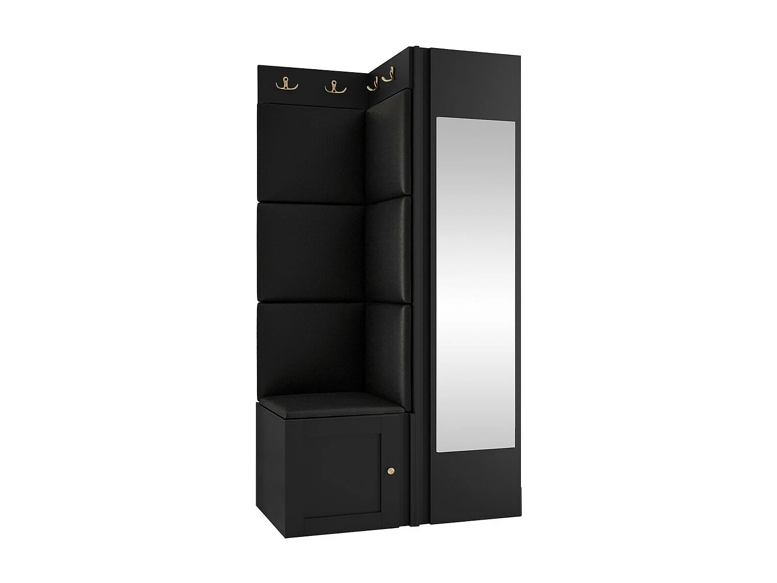 Meuble d'entrée Hartford 382, 186x82x46cm, Disponible, Noir, Stratifié|Faux cuir|MDF