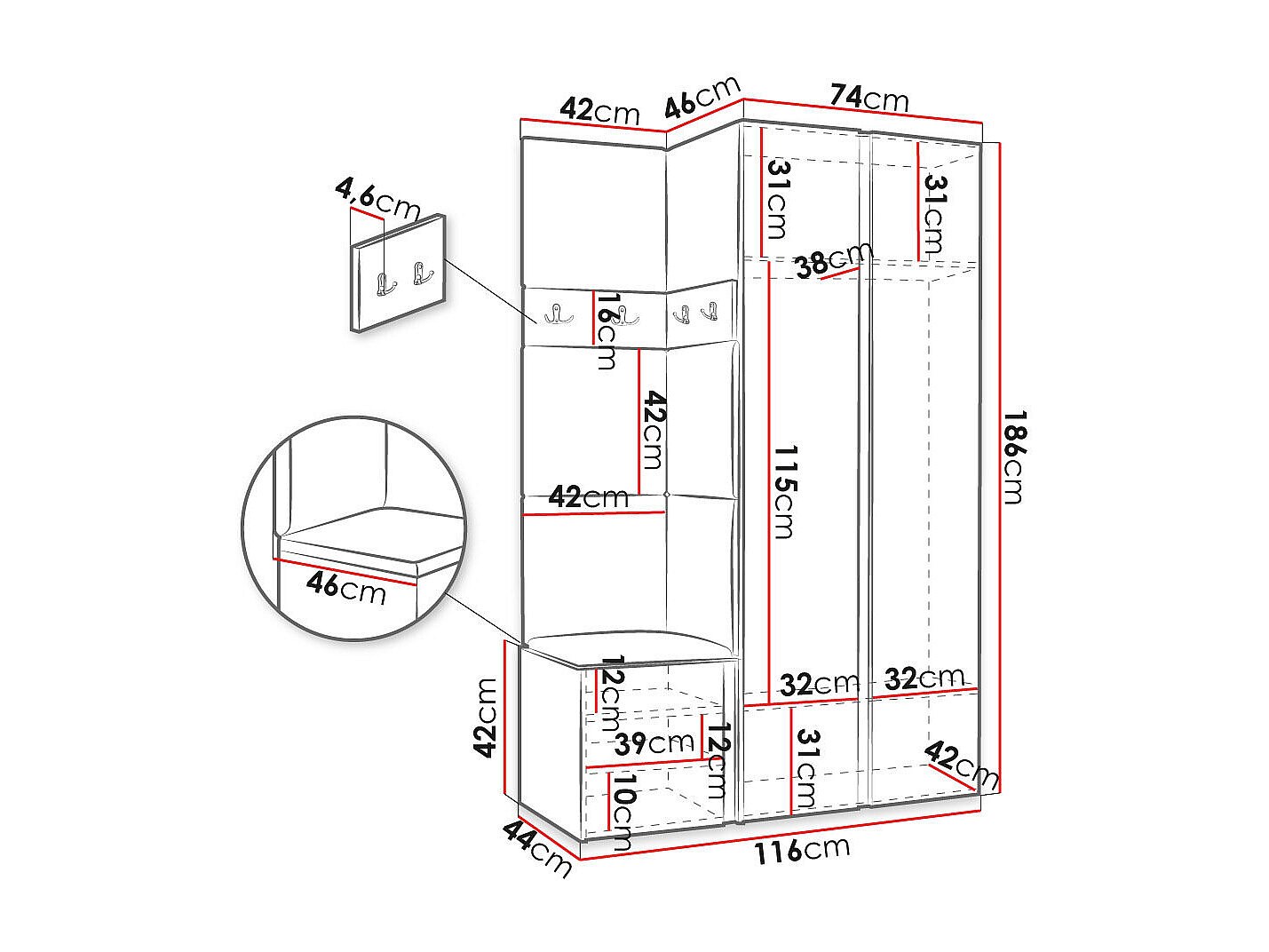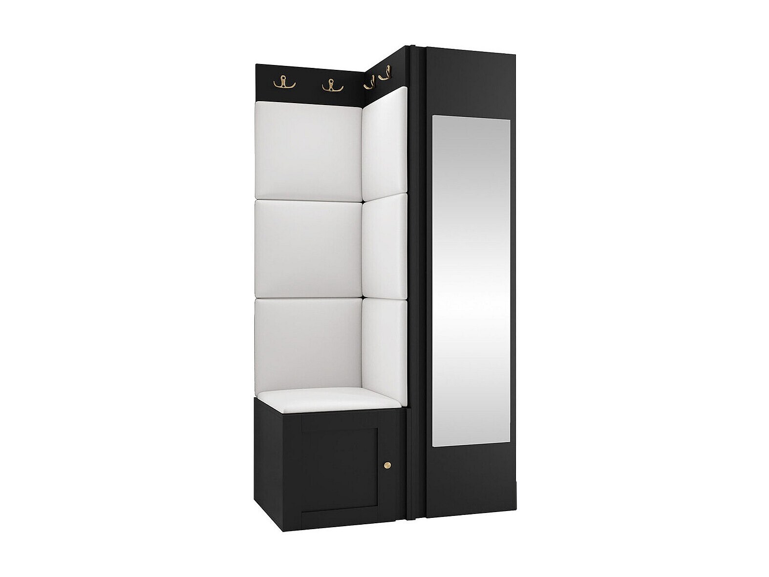 Meuble d'entrée Hartford 382, 186x82x46cm, Miroir, Noir|Blanc, Stratifié|Faux cuir|MDF