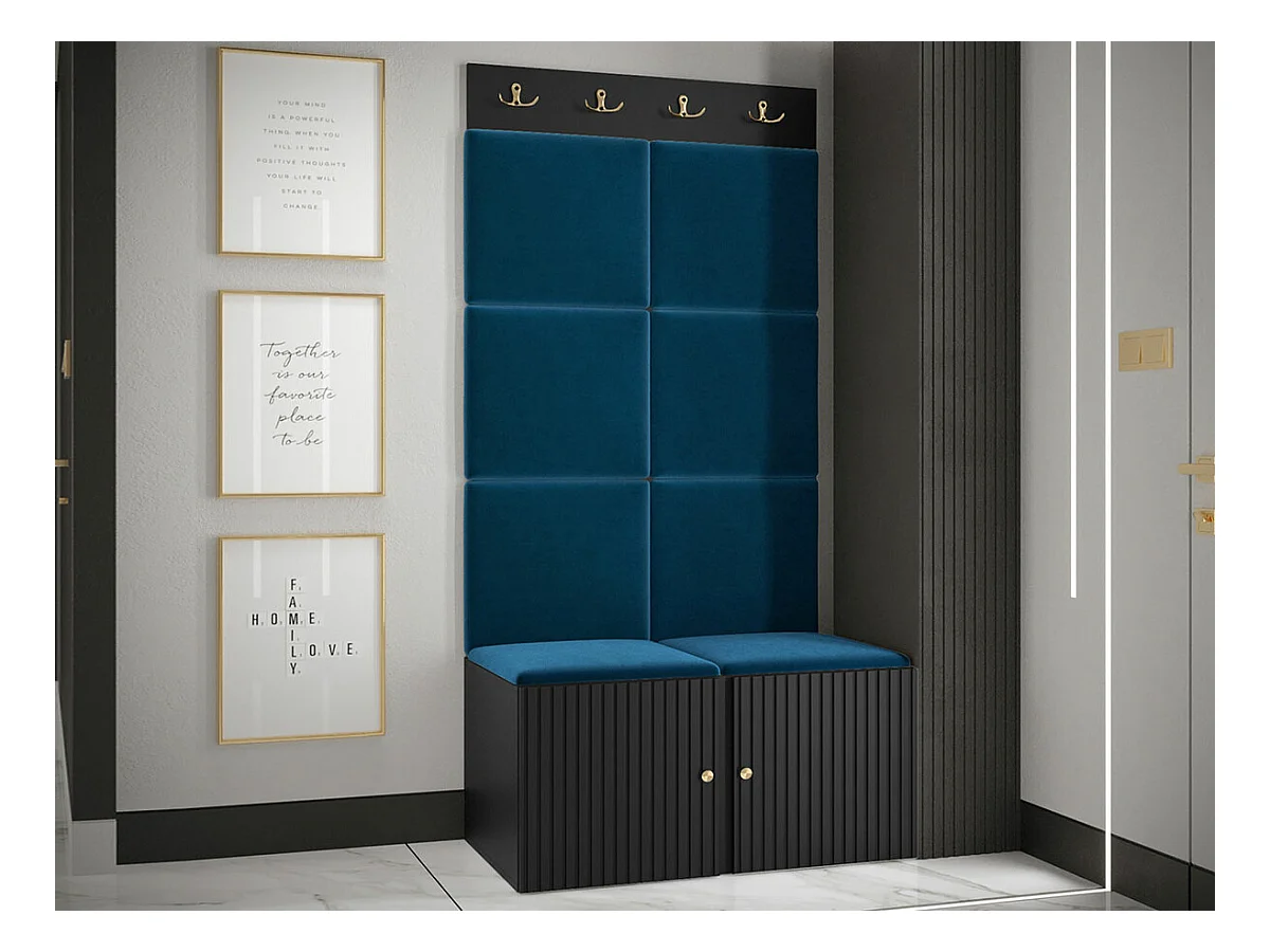 Meuble d'entrée Hartford 383, 186x84x46cm, Bleu|Noir, MDF|Stratifié|Tissu, À poser|Murale