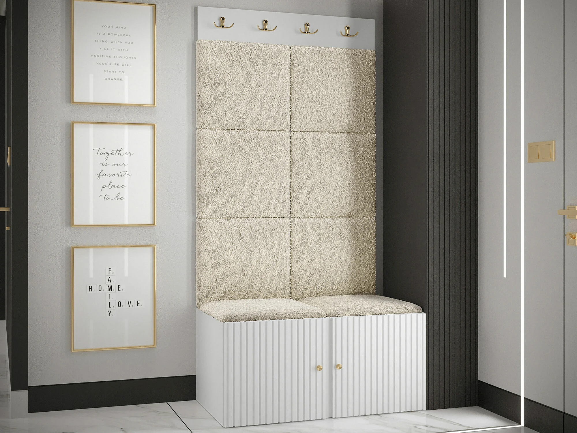 Meuble d'entrée Hartford 383, 186x84x46cm, Brun clair|Blanc, Tissu|Stratifié