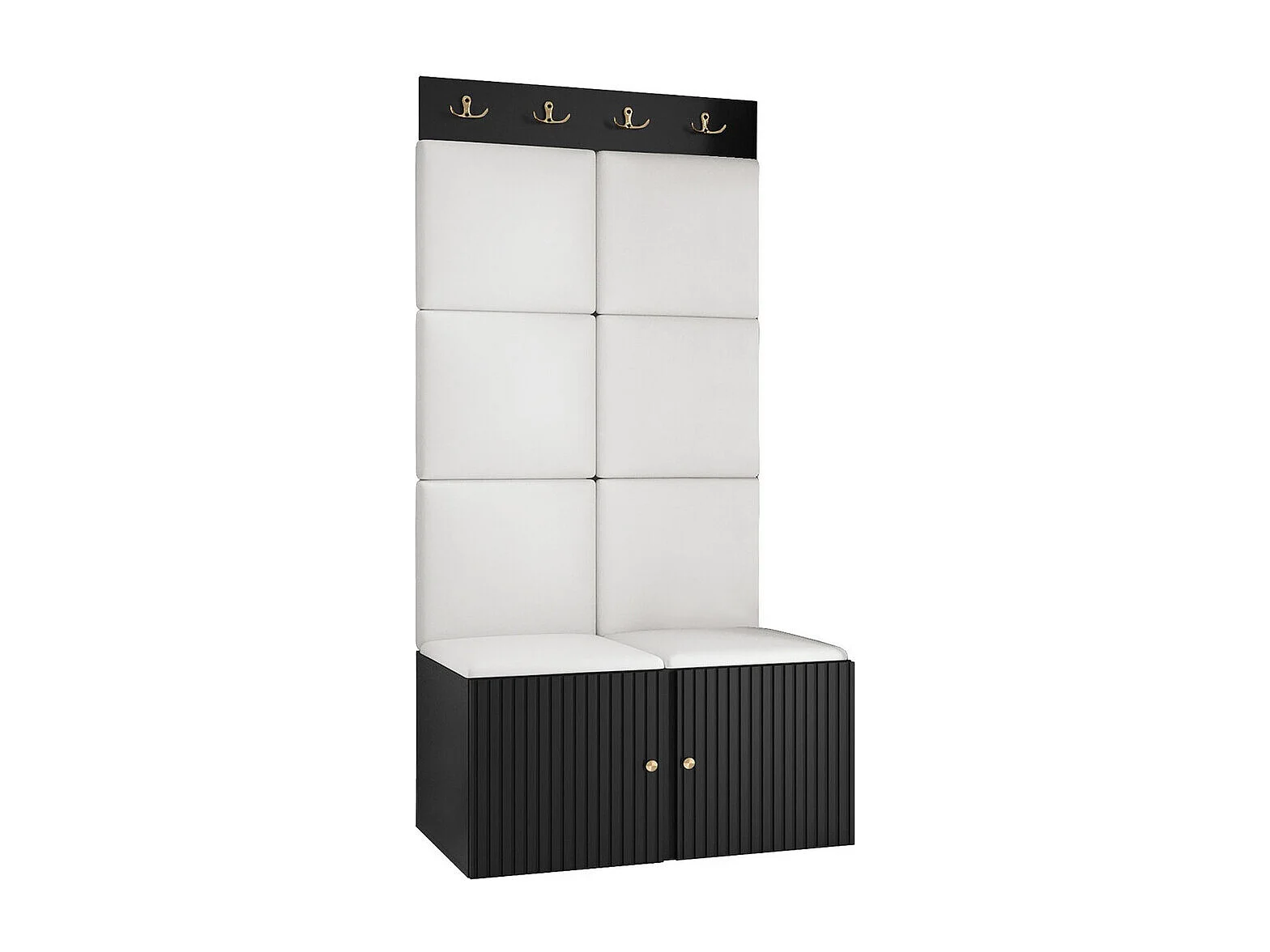 Meuble d'entrée Hartford 383, 186x84x46cm, Noir|Blanc, Stratifié|Faux cuir|MDF