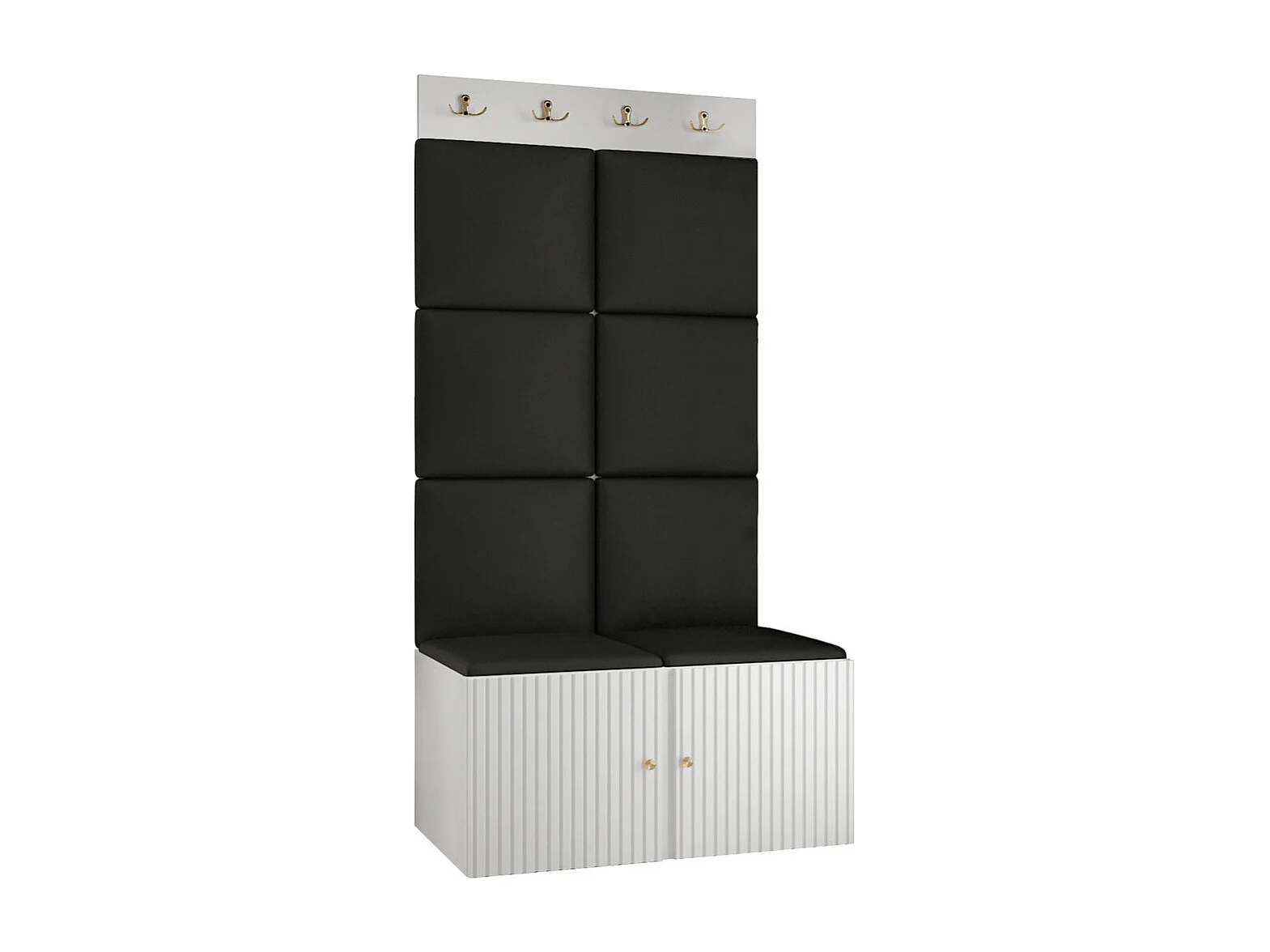 Meuble d'entrée Hartford 383, 186x84x46cm, Noir|Blanc, Stratifié|Faux cuir|MDF