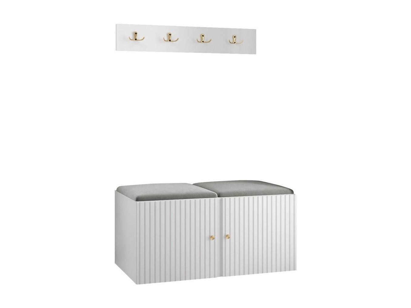 Meuble d'entrée Hartford 384, Blanc|Gris, Stratifié|Tapisserie|MDF, À suspendre|À poser
