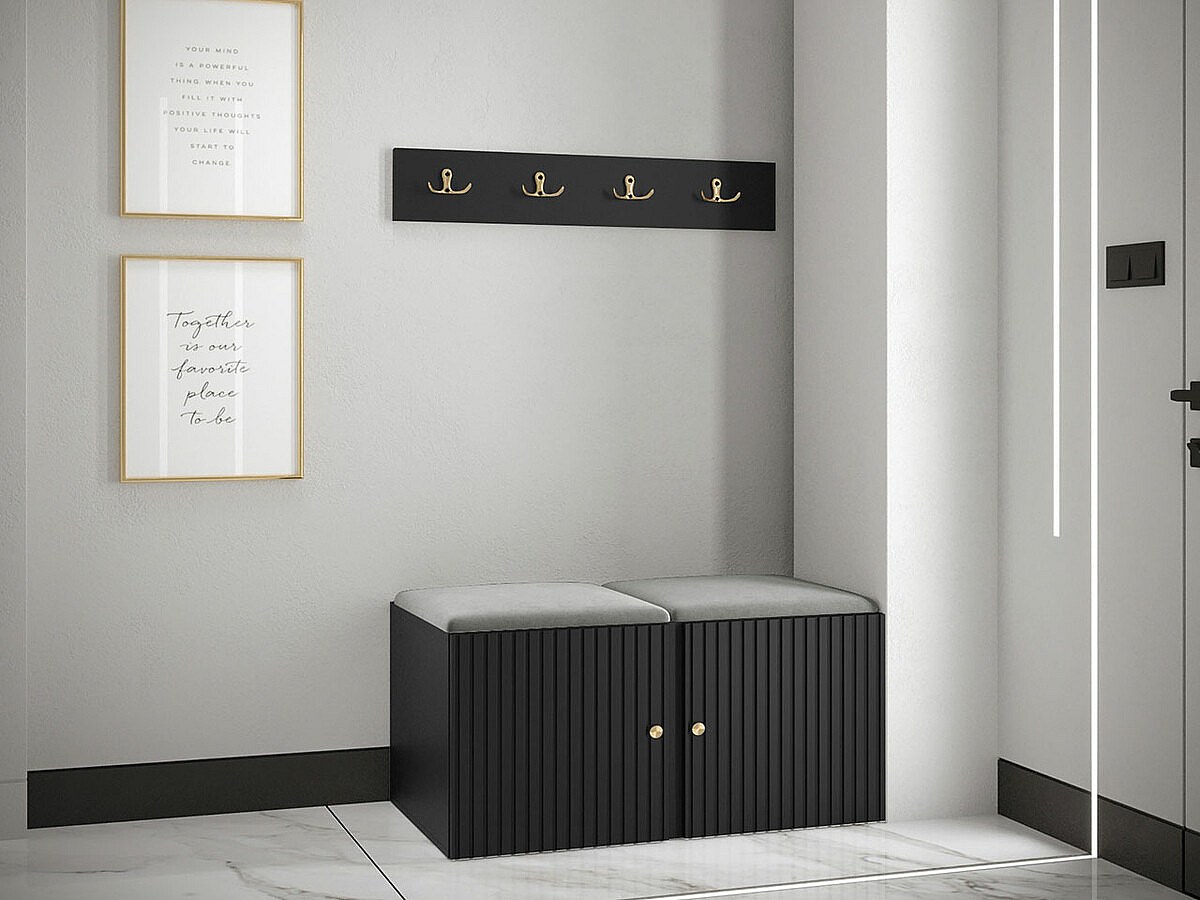Meuble d'entrée Hartford 384, Noir|Gris, Stratifié|Tapisserie|MDF, À suspendre|À poser