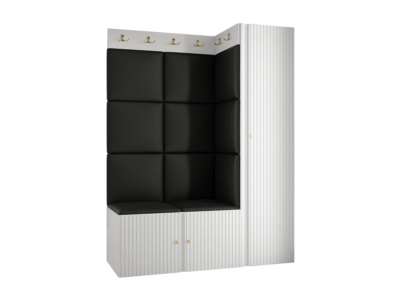 Meuble d'entrée Hartford 385, 186x124x46cm, Noir|Blanc, MDF|Stratifié|Faux cuir