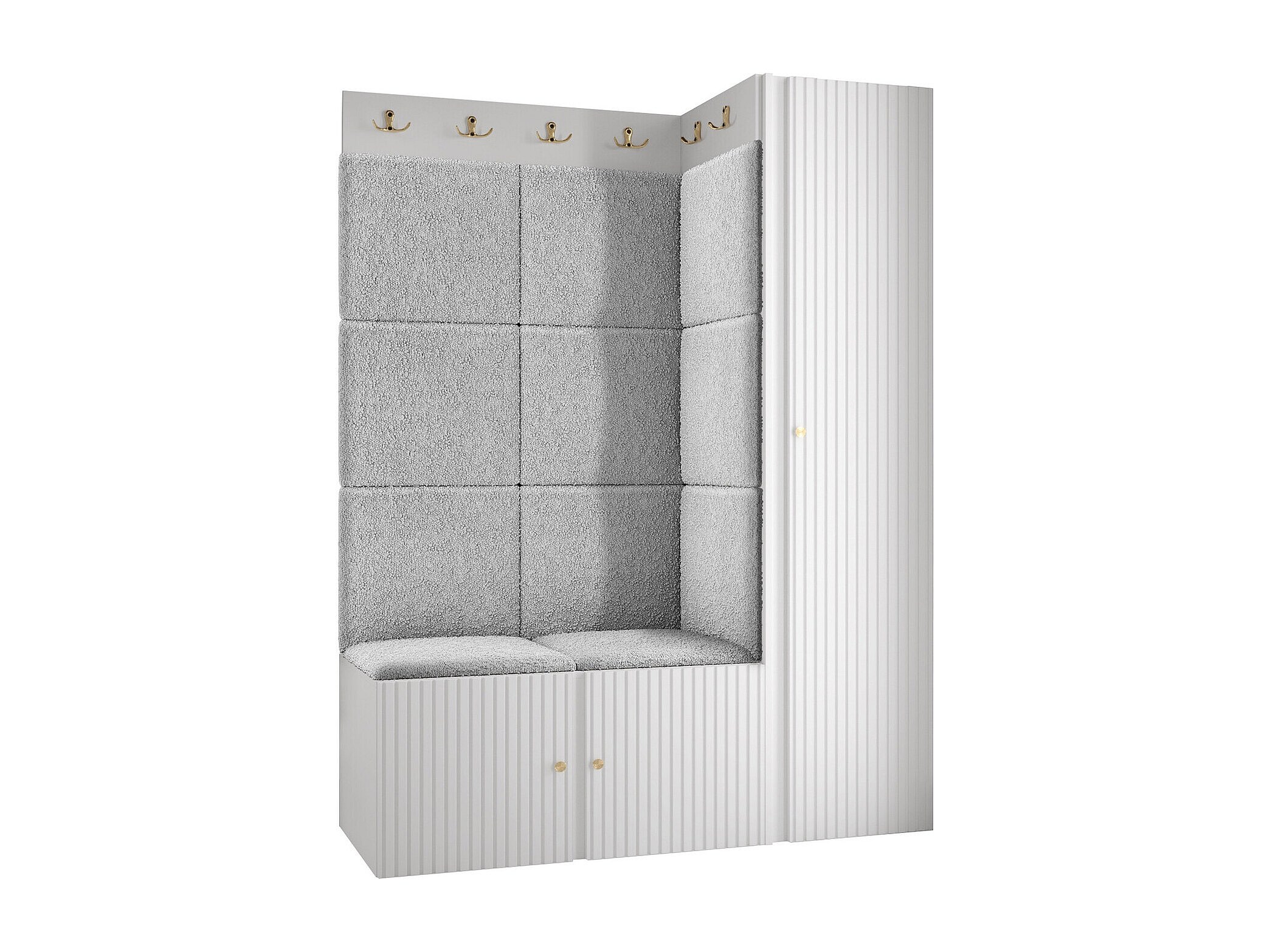 Meuble d'entrée Hartford 385, 186x124x46cm, Blanc|Gris clair, Tapisserie|MDF|Stratifié