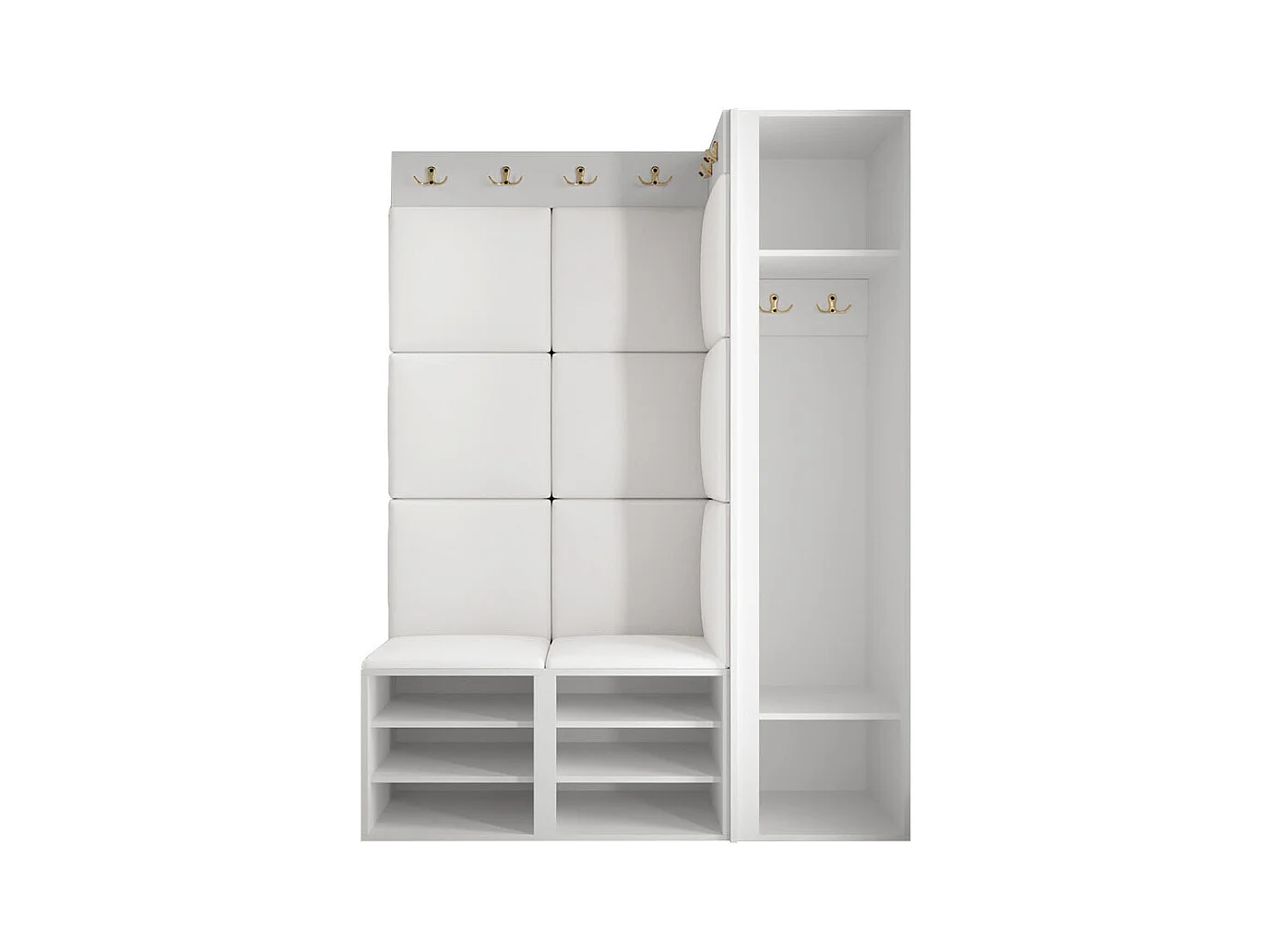 Meuble d'entrée Hartford 385, 186x124x46cm, Noir|Blanc, MDF|Stratifié|Faux cuir
