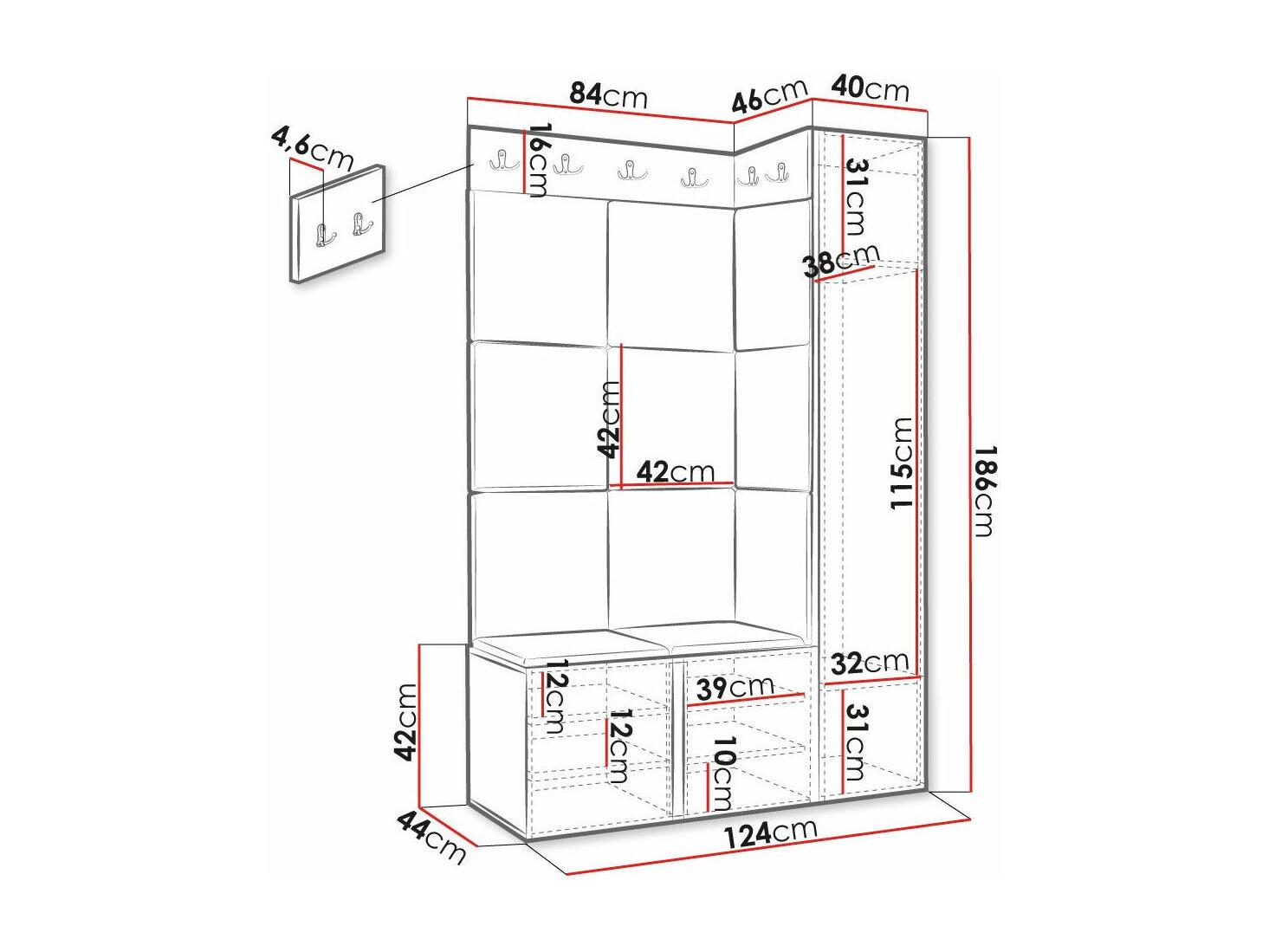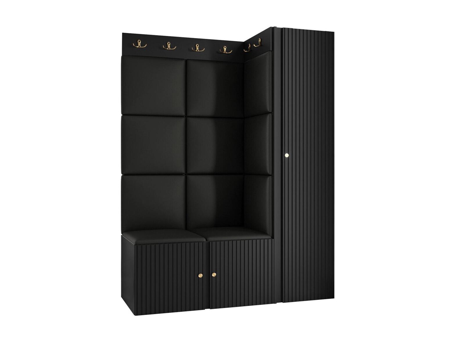 Meuble d'entrée Hartford 385, 186x124x46cm, Noir, Stratifié|Faux cuir|MDF