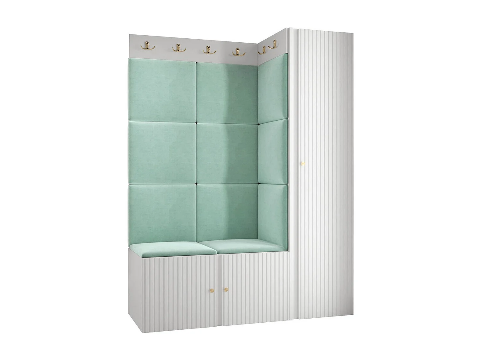 Meuble d'entrée Hartford 385, 186x124x46cm, Turquoise|Blanc, Stratifié|Tissu|MDF
