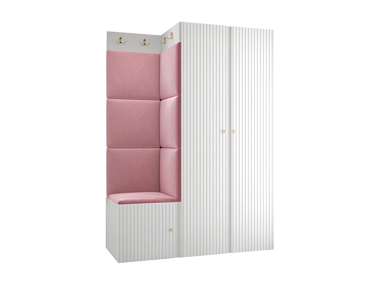 Meuble d'entrée Hartford 387, 186x116x46cm, Blanc|Rose, Tissu|MDF|Stratifié