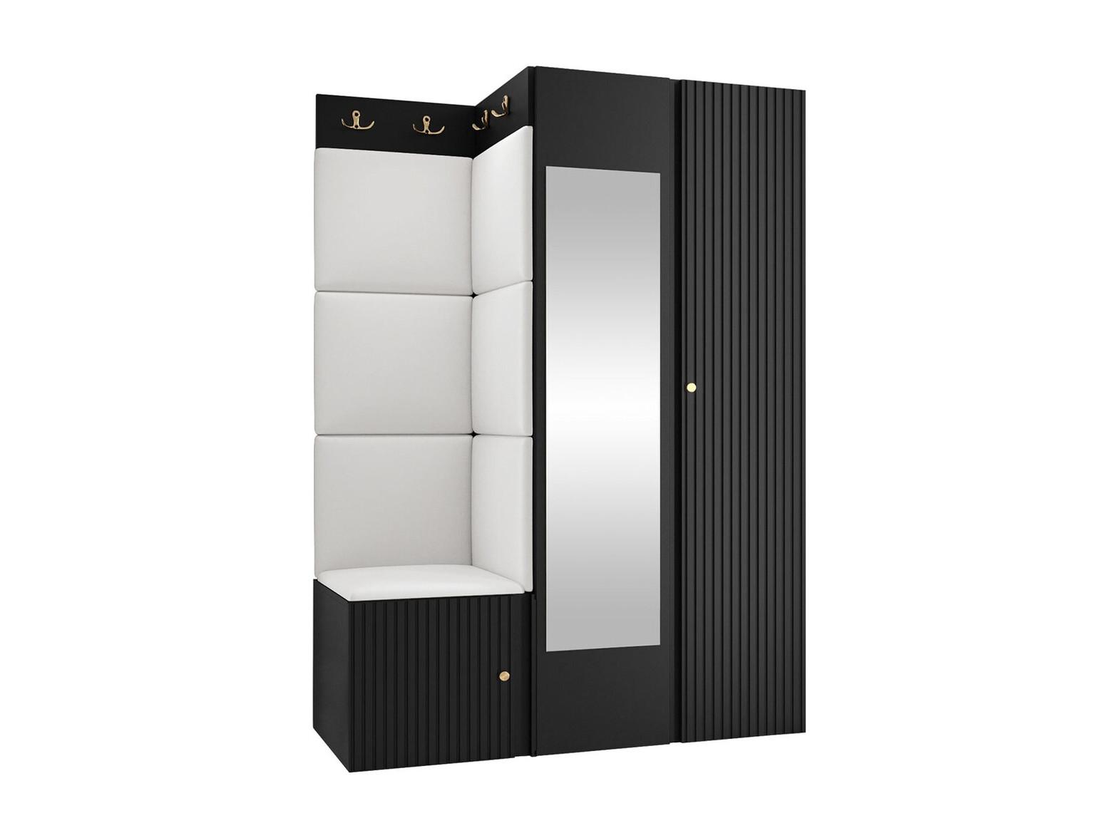 Meuble d'entrée Hartford 388, 186x116x46cm, Miroir, Blanc|Noir, Stratifié|Faux cuir|MDF