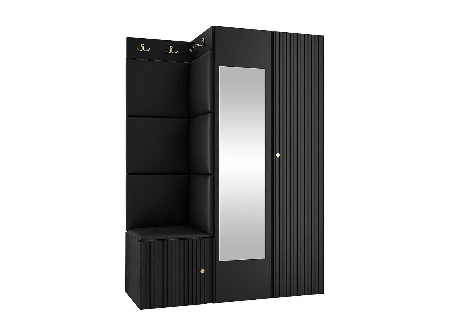 Meuble d'entrée Hartford 388, 186x116x46cm, Miroir, Noir, Stratifié|Faux cuir|MDF