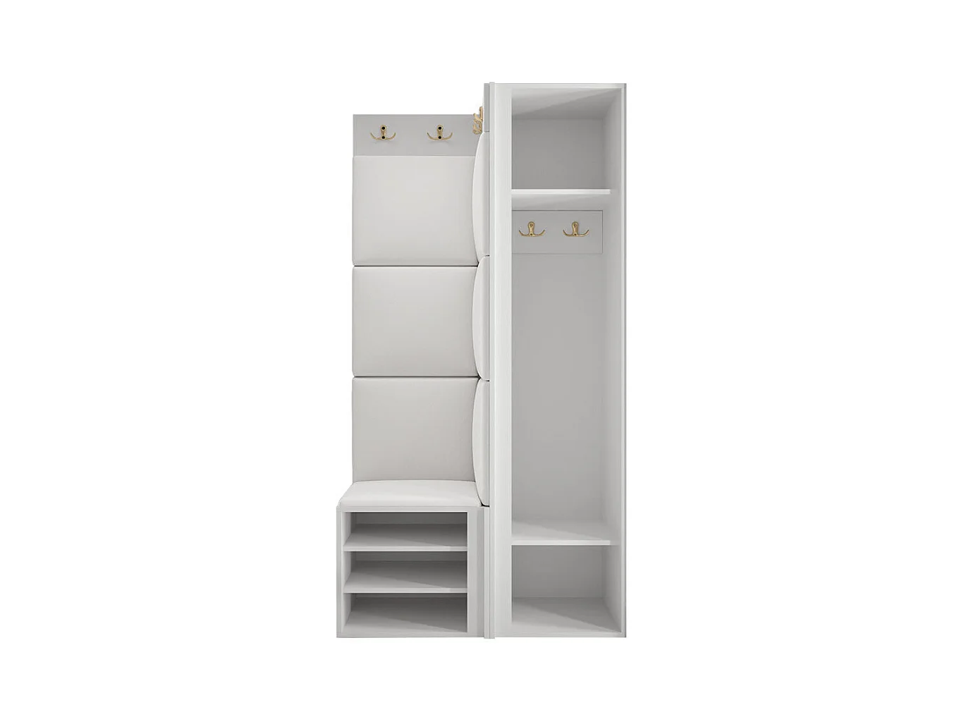 Meuble d'entrée Hartford 390, 186x82x46cm, Blanc|Brun clair, Tapisserie|MDF|Stratifié