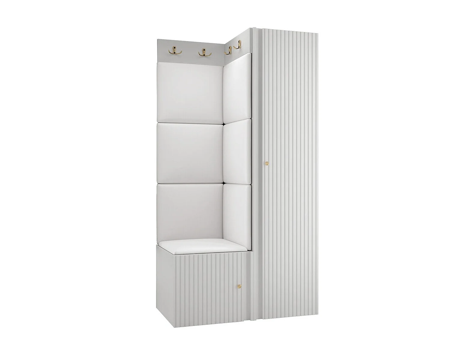 Meuble d'entrée Hartford 390, 186x82x46cm, Blanc, Faux cuir|MDF|Stratifié, À poser|Murale