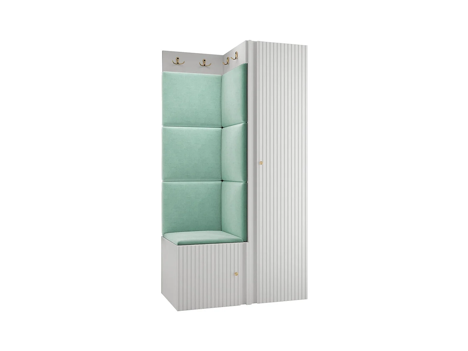 Meuble d'entrée Hartford 390, 186x82x46cm, Blanc|Turquoise, Stratifié|Tissu|MDF