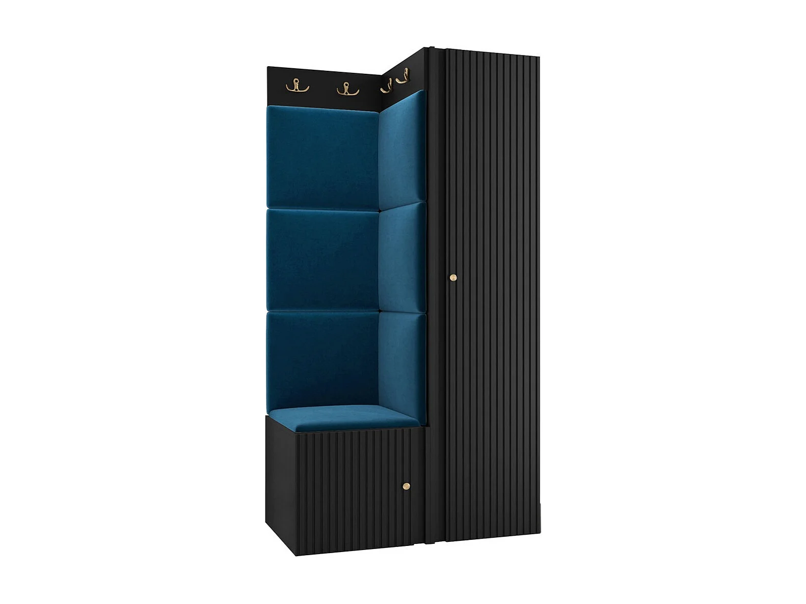 Meuble d'entrée Hartford 390, 186x82x46cm, Bleu|Noir, Stratifié|Tissu|MDF, Murale|À poser