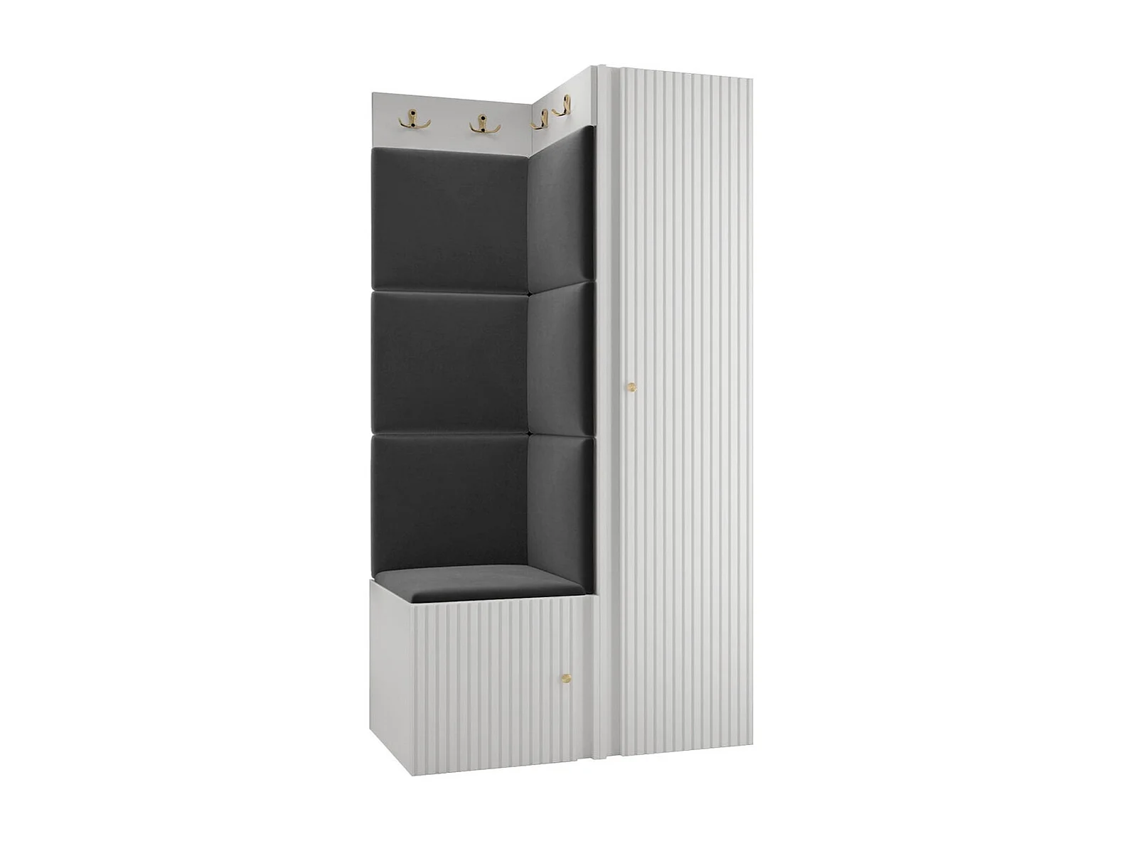 Meuble d'entrée Hartford 390, 186x82x46cm, Blanc|Noir, Stratifié|Tissu|MDF