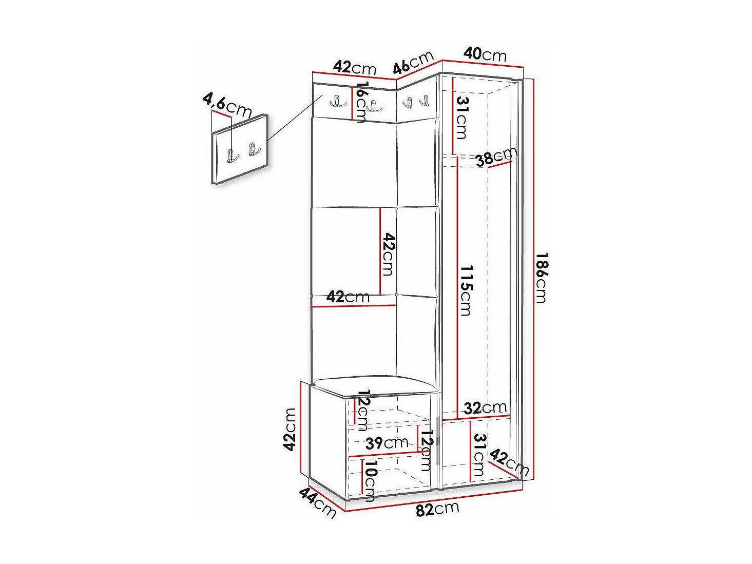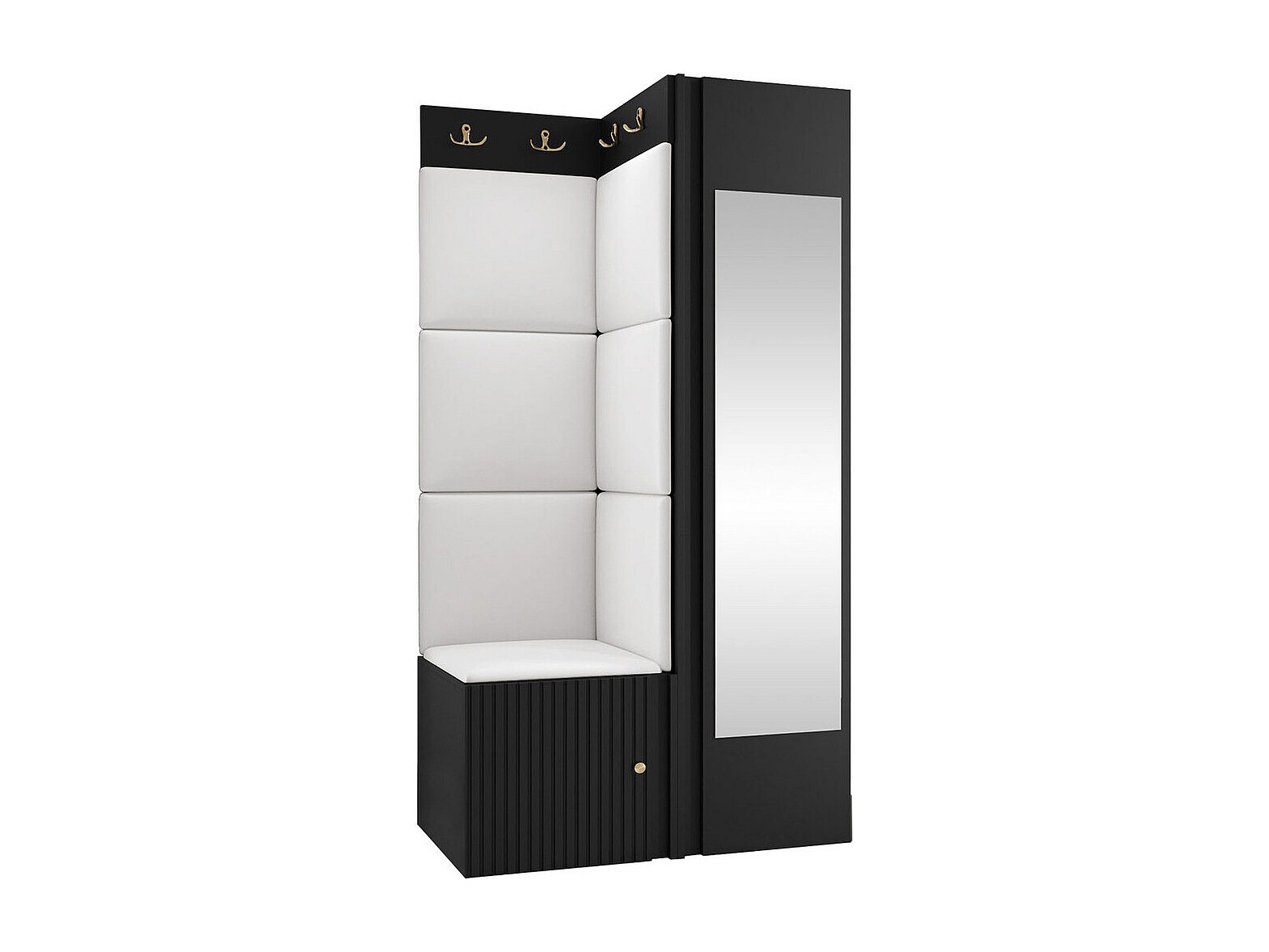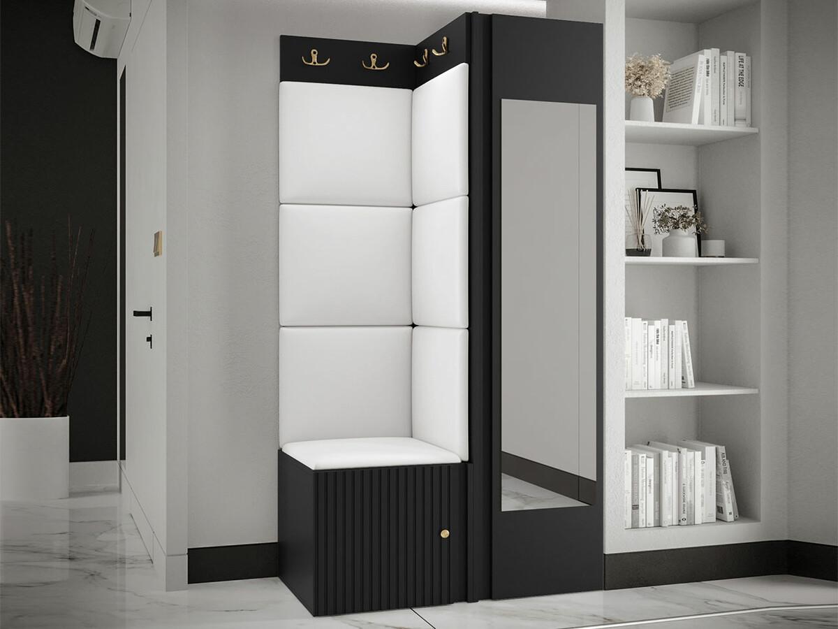 Meuble d'entrée Hartford 391, 186x82x46cm, Miroir, Blanc|Noir, MDF|Stratifié|Faux cuir