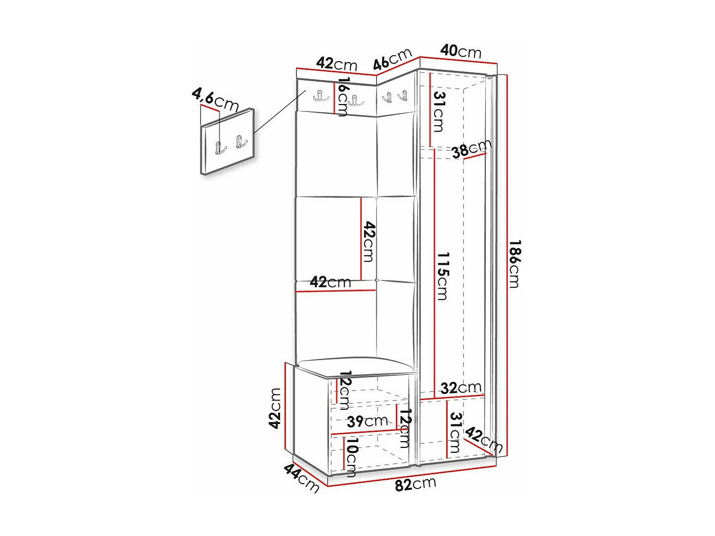 Meuble d'entrée Hartford 391, 186x82x46cm, Disponible, Noir|Bleu, Stratifié|Tissu|MDF