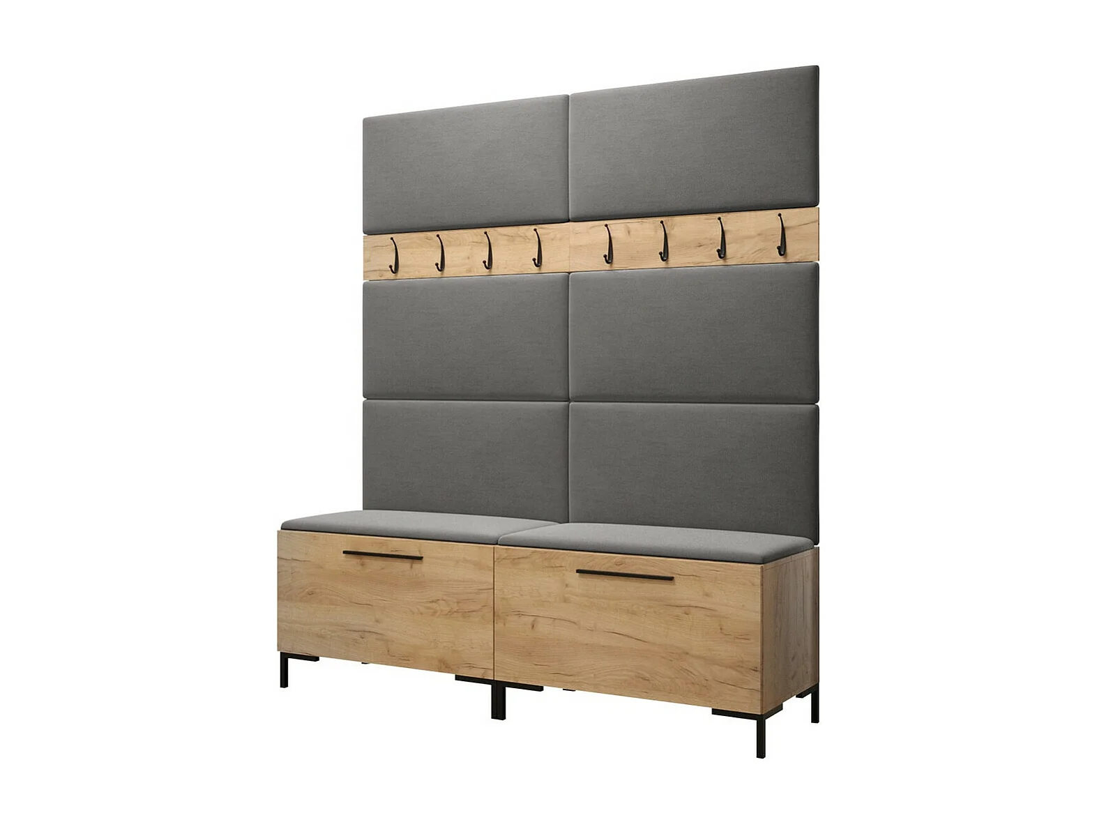 Meuble d'entrée Tivsoa 101, 196x168x46cm, Craft chêne, Tissu|Stratifié, À poser|Murale