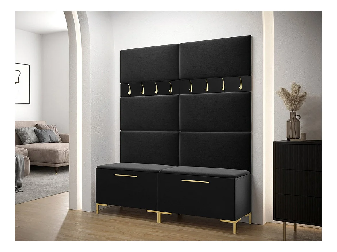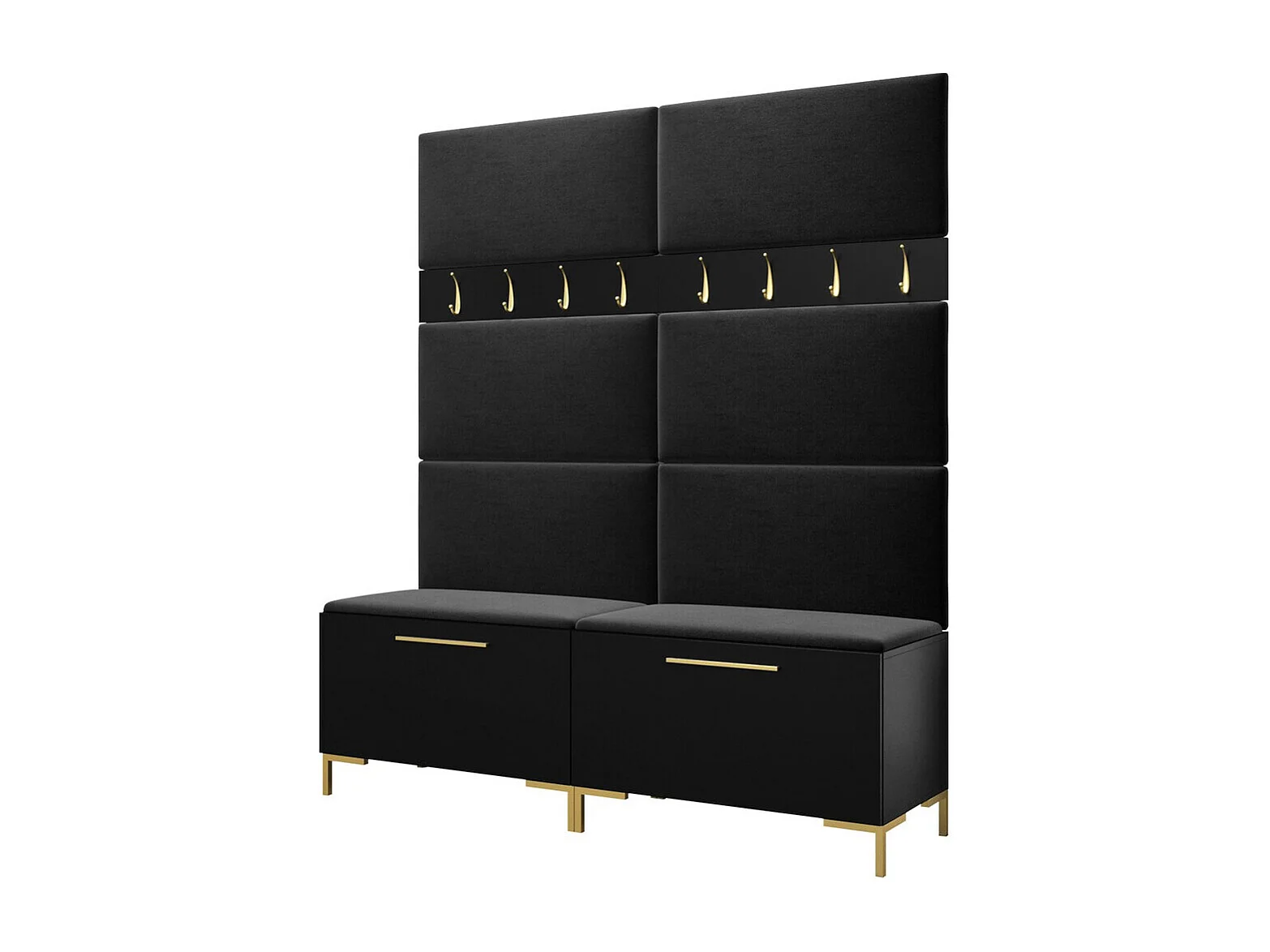 Meuble d'entrée Tivsoa 101, 196x168x46cm, Noir, Tissu|Stratifié, À poser|Murale