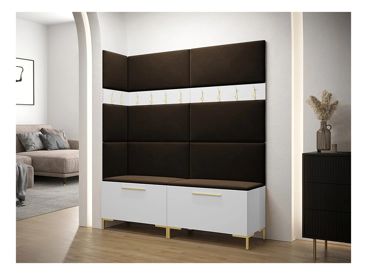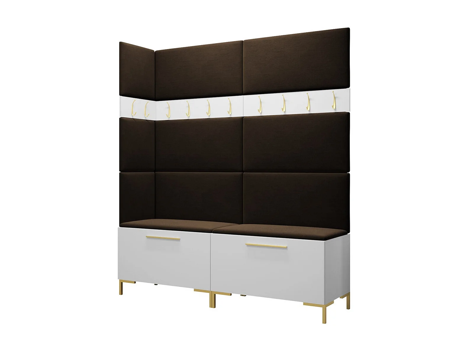 Meuble d'entrée Tivsoa 104, 196x168x46cm, Blanc|Brun foncé, Tissu|Stratifié