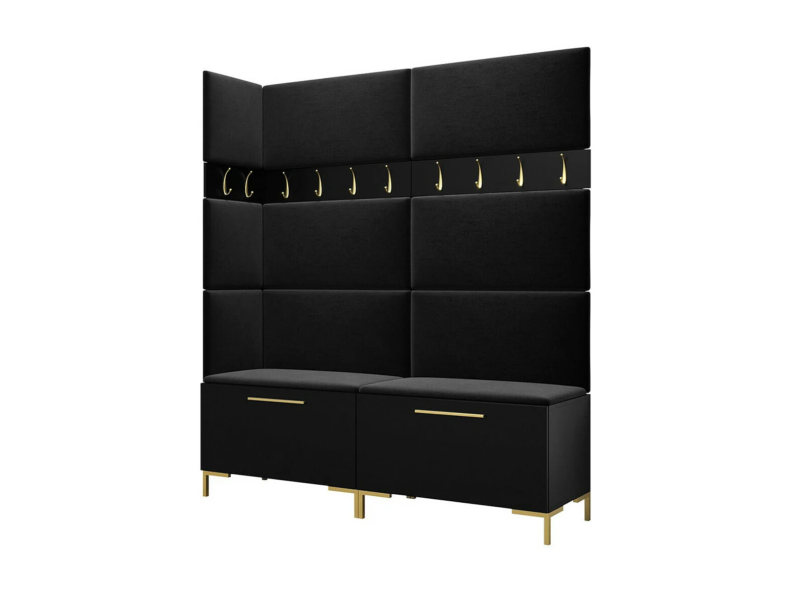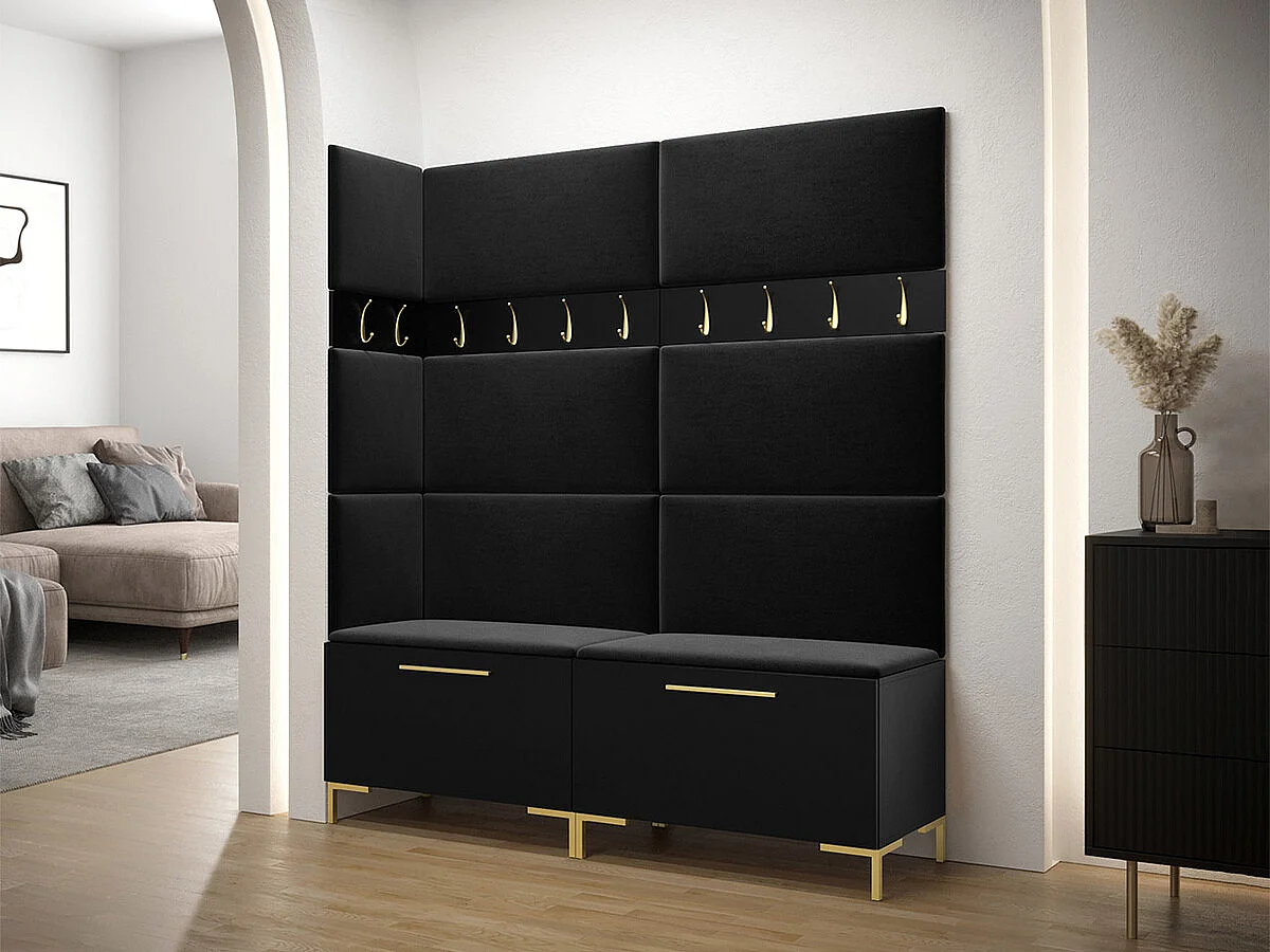 Meuble d'entrée Tivsoa 104, 196x168x46cm, Noir, Tissu|Stratifié, À poser|Murale