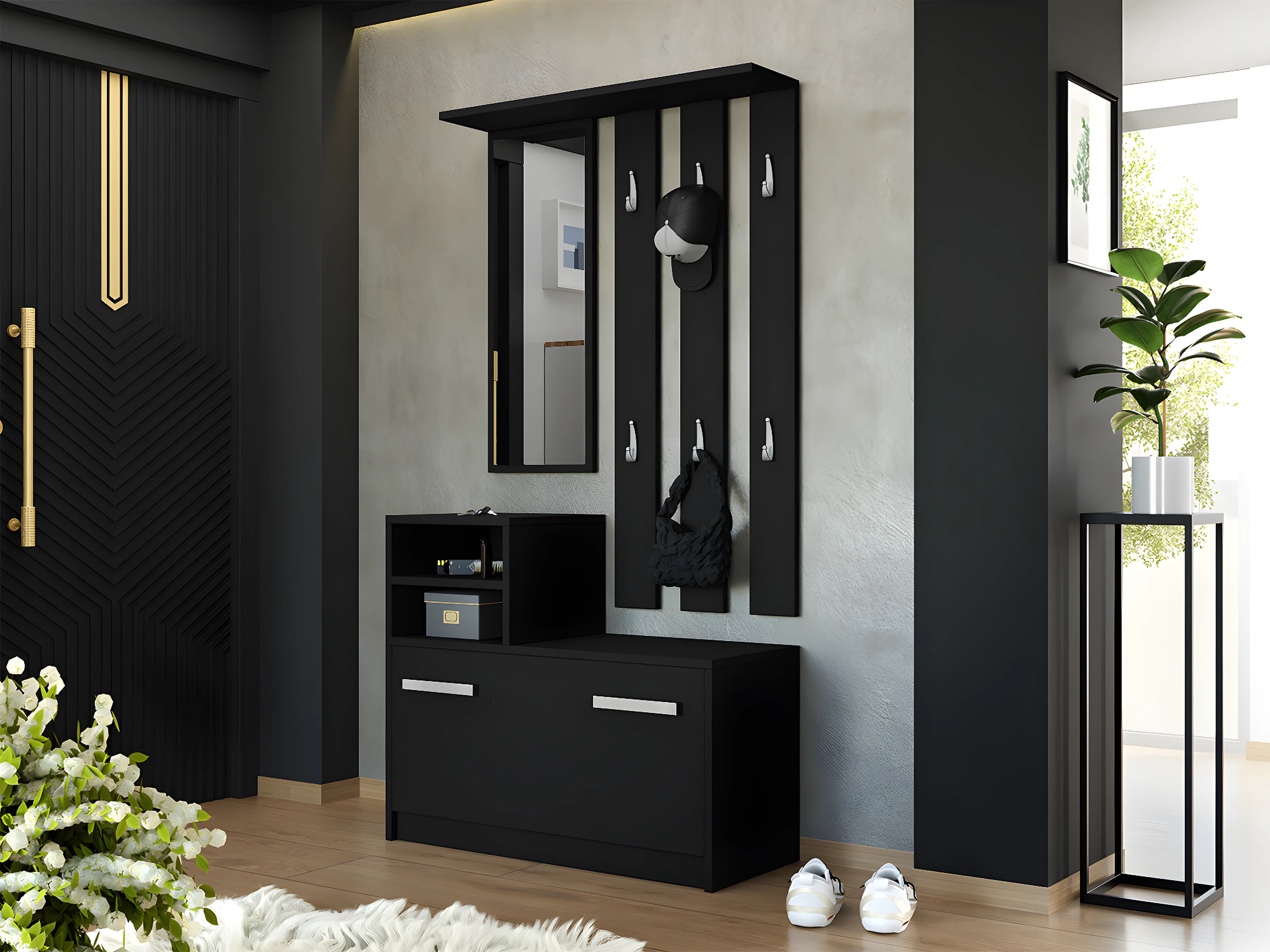 Meuble d'entrée Mandeville 100, Disponible, Noir, Stratifié, À poser|Murale