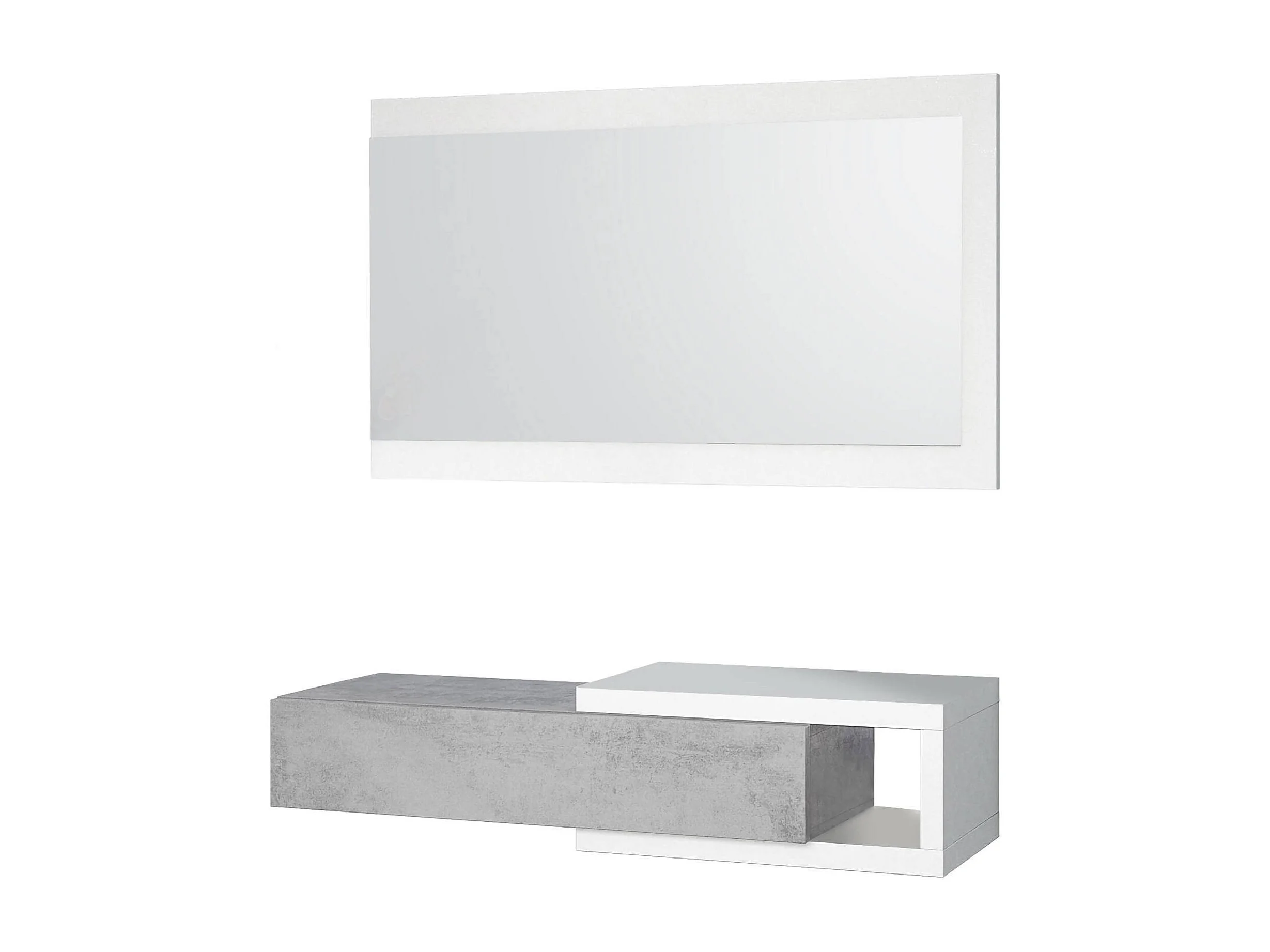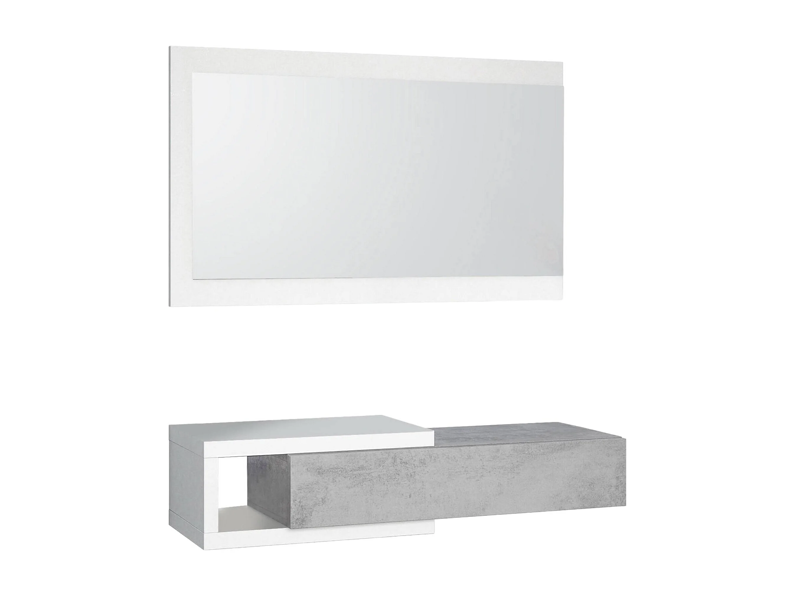 Meuble d'entrée Mcallen, Entrée réversible avec miroir, Meuble d'entrée avec tiroir, Plateau de poche pour appartements, 95x26h69 cm, Blanc et Ciment