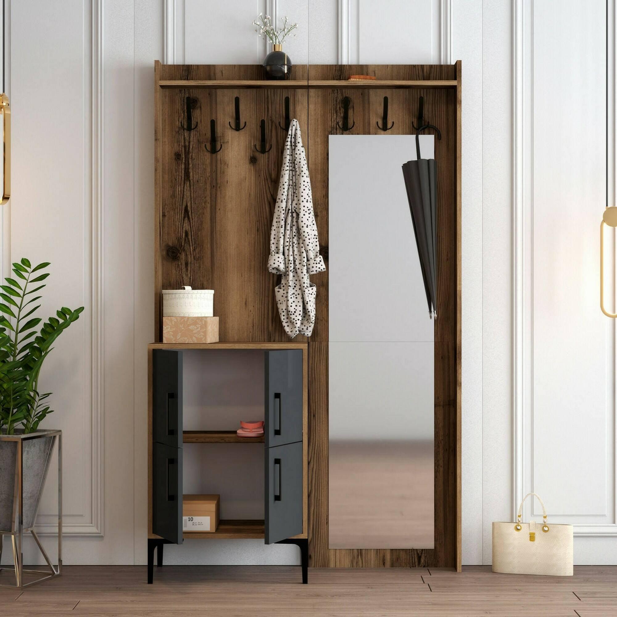 MEUBLE D'ENTRÉE - Crochet d'entrée, Composition pour l'atrium, Console de rangement multifonction, 120x35h200 cm, Noyer et Anthracite.