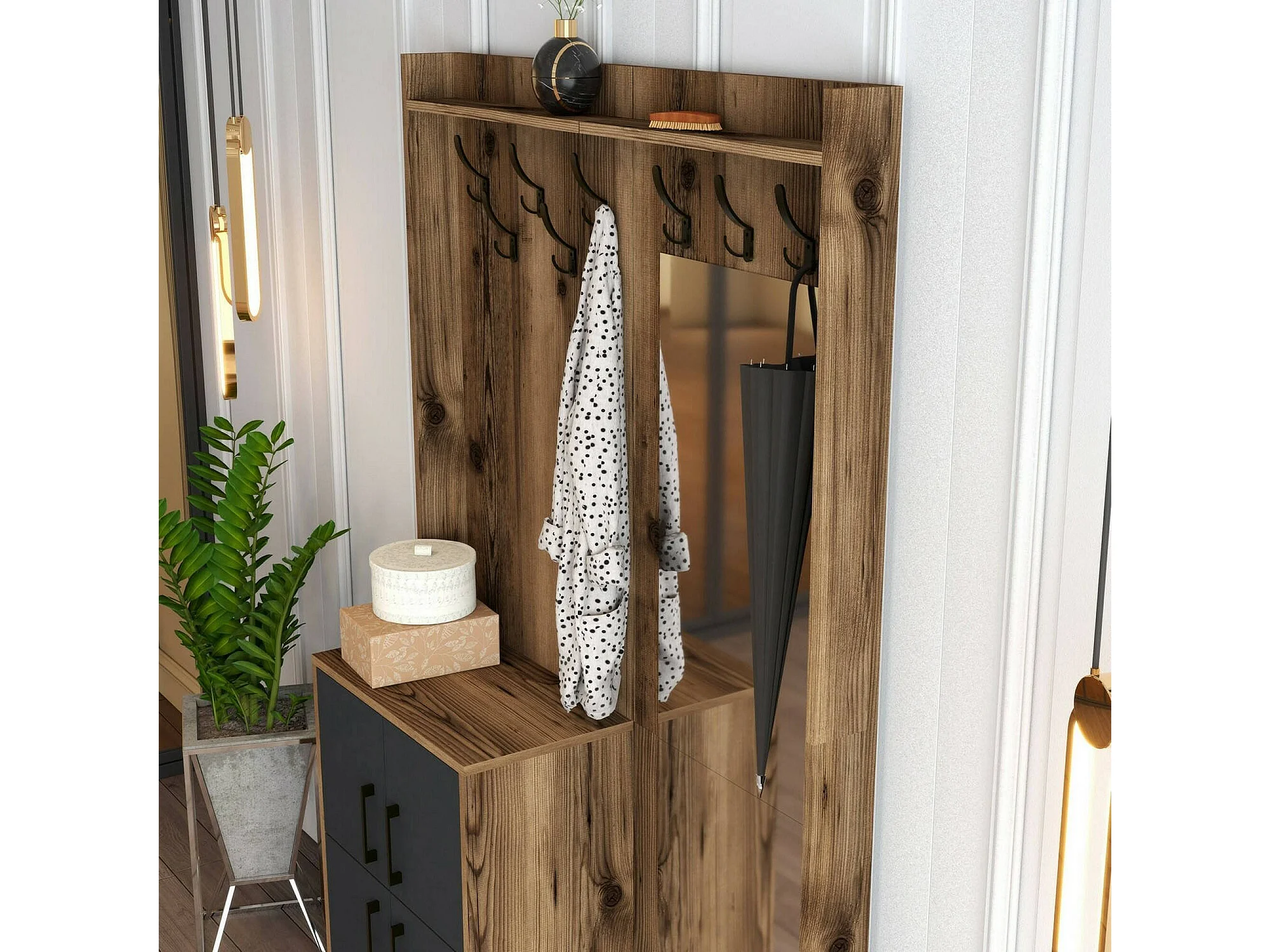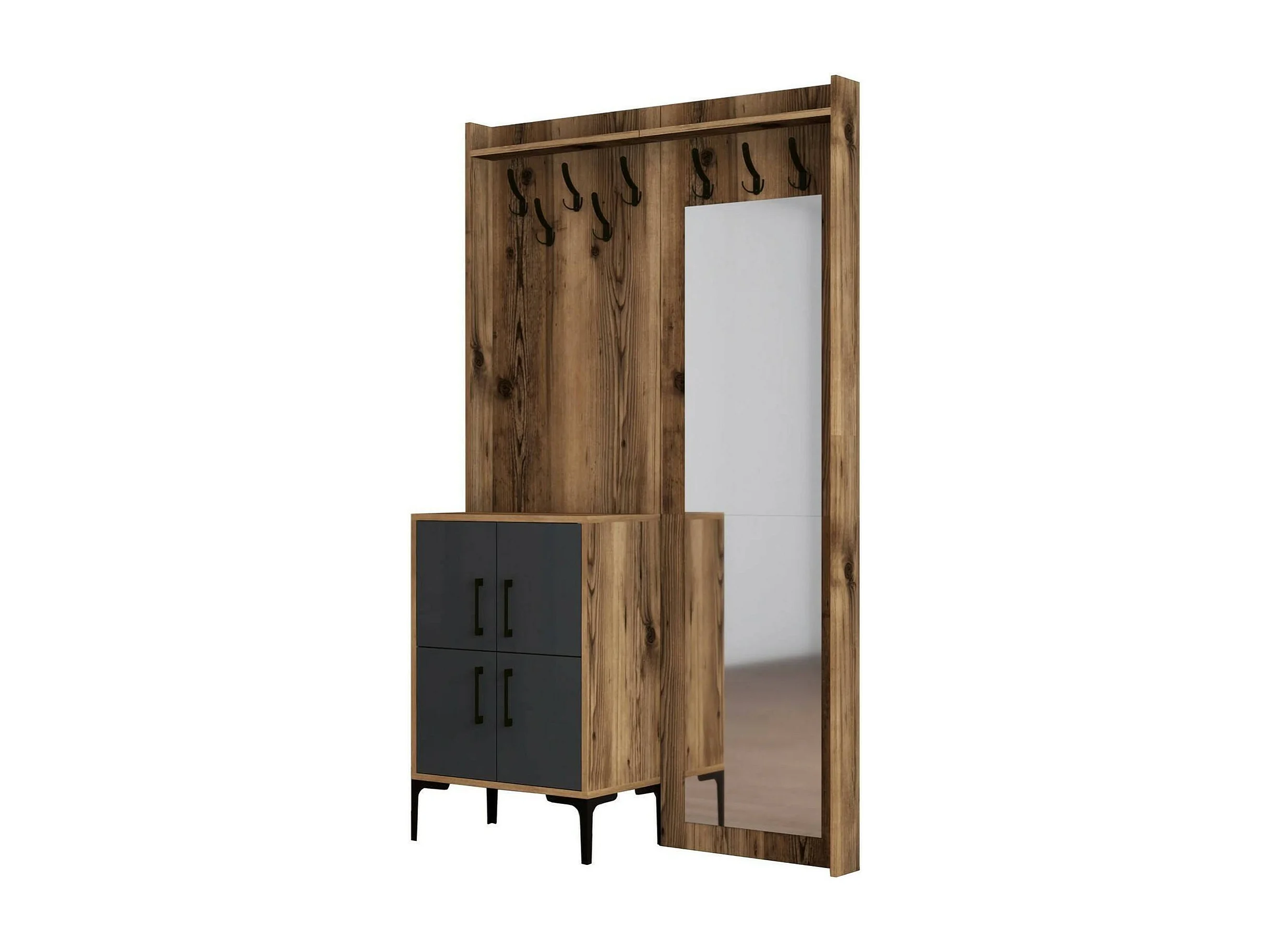Meuble d'entrée Pollux, Crochet d'entrée, Composition pour l'atrium, Console de rangement multifonction, 120x35h200 cm, Noyer et Anthracite