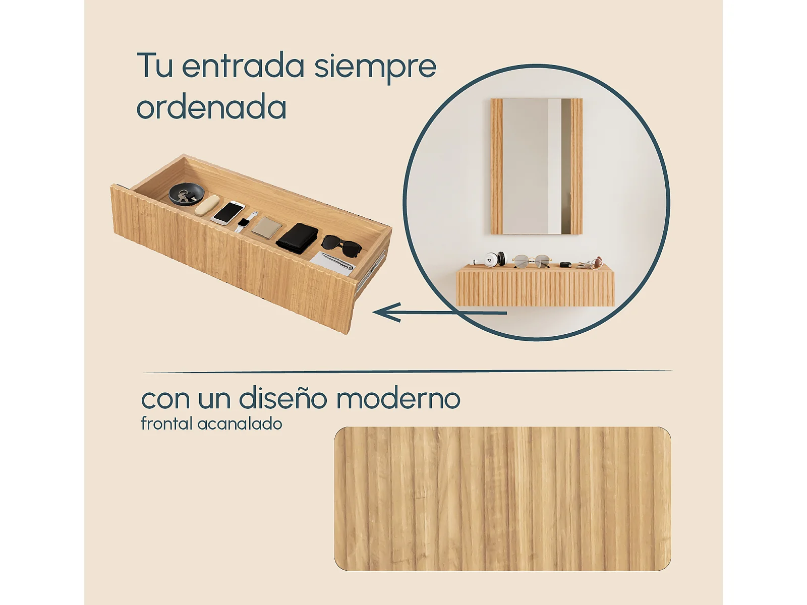 Meuble d'entrée cajun suspendu cerisier 70x20x28 cm