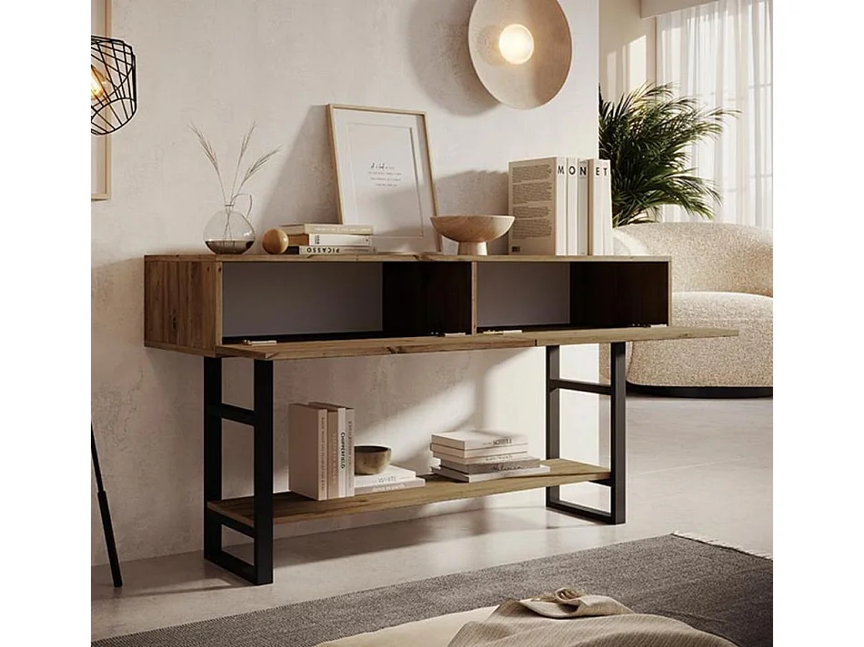 Meuble d'entrée en Pin Atlantique et Acier 138,8x43x75,7cm Factory R1