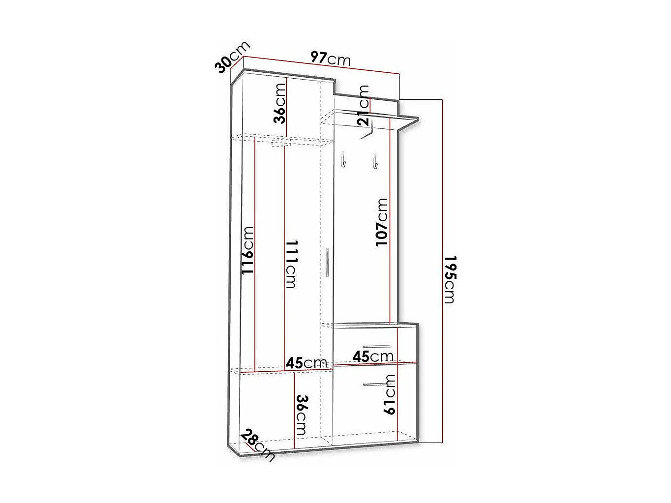 Meuble d'entrée Stanton 141, 195x97x28cm, Noir|Chêne wotan, Stratifié, À poser