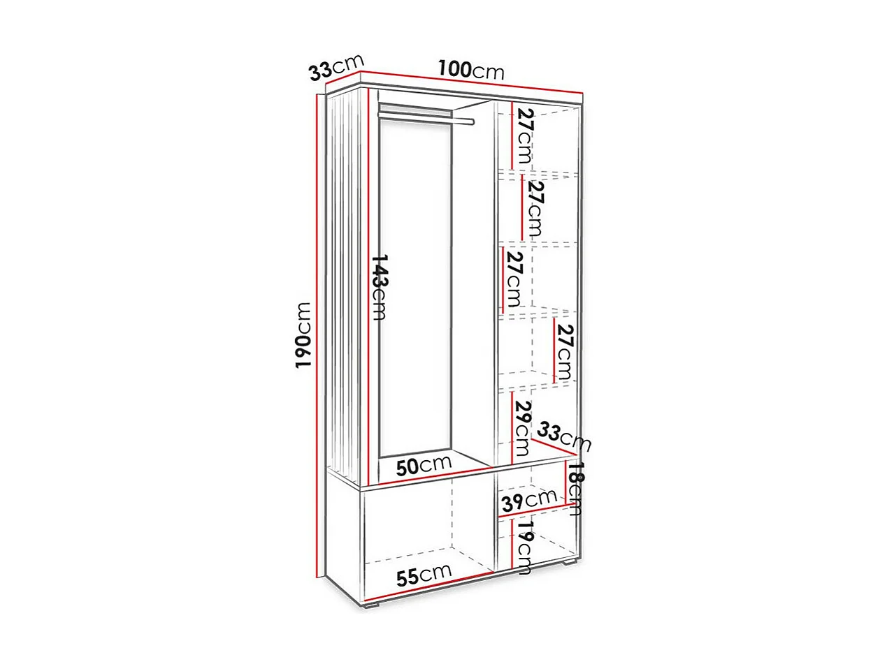 Meuble d'entrée Stanton 145, 190x100x33cm, Disponible, Noir|Blanc, Stratifié, À poser