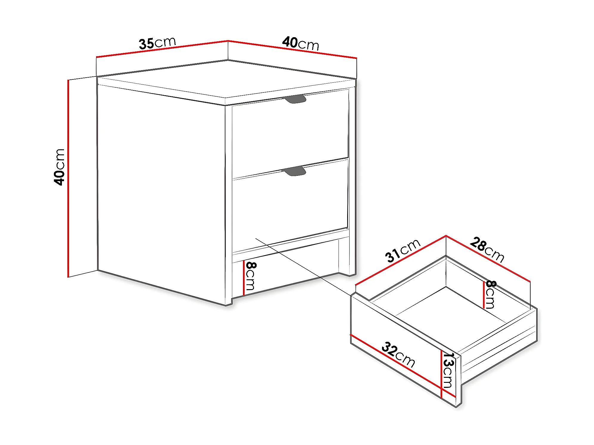 Table de chevet "Tireno" - 35 cm X 40 cm X 40 cm - Blanc