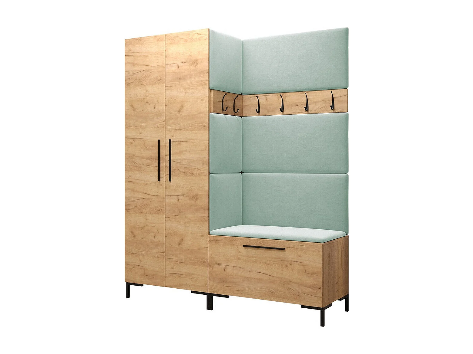 Meuble d'entrée Tivsoa 100, 196x158x44cm, Craft chêne, Stratifié|Tissu, Murale|À poser