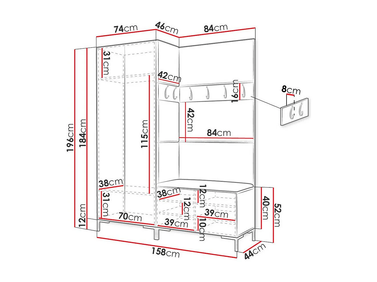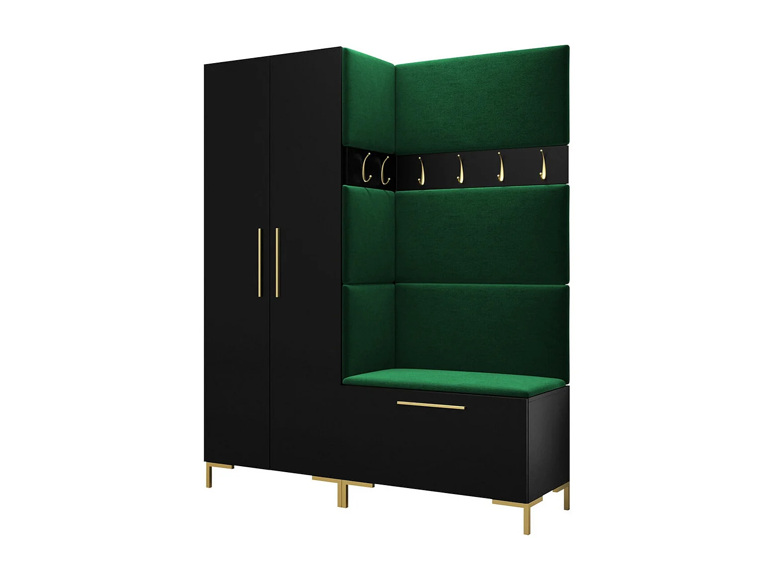 Meuble d'entrée Tivsoa 100, 196x158x44cm, Noir, Tissu|Stratifié, Murale|À poser